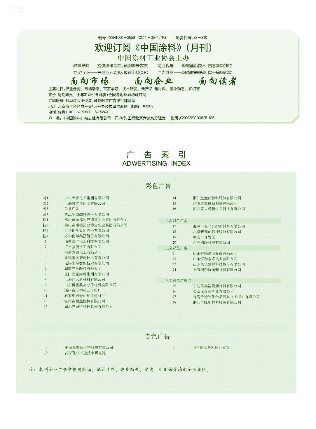 湖南金磐、武漢現代工業技術研究院、《中國涂料》征訂通知