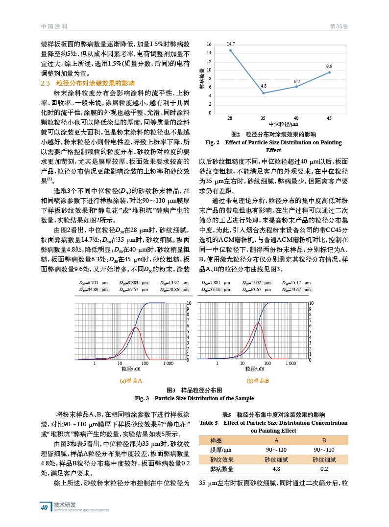 對新能源汽車配套充電裝置上應用的砂紋粉末涂料進行了制備和應用研究,重點考察了在厚涂的要求下,通過電荷調整劑加量、磨粉粒徑分布、噴涂參數控制3個方面的分析和討論,得到了穩定的涂裝砂紋效果,克服了工件邊角靜電花、堆積坑的弊病問題,在客戶處成功應用。
