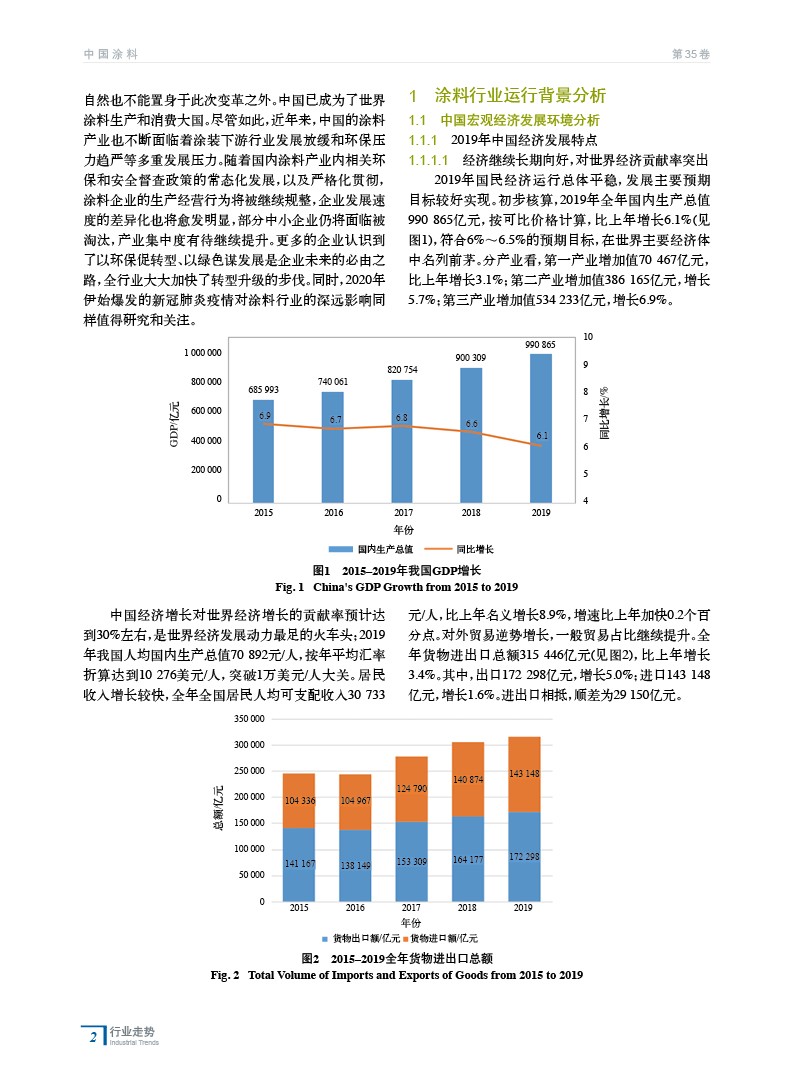 摘要:概述了中國經濟發展特點及涂料行業相關政策和其下游房地產、家具、汽車、船舶等行業發展形勢。以國家統計局數據為基礎,對2019年中國涂料行業的產量、產值、主營業務收入、主要經濟指標和進出口等經濟運行情況進行了分析,剖析了中國涂料細分市場運行情況。在總結2019中國涂料行業主要運行特點的基礎上,結合突發新冠肺炎疫情,對2020年中國涂料行業的前景進行了展望。