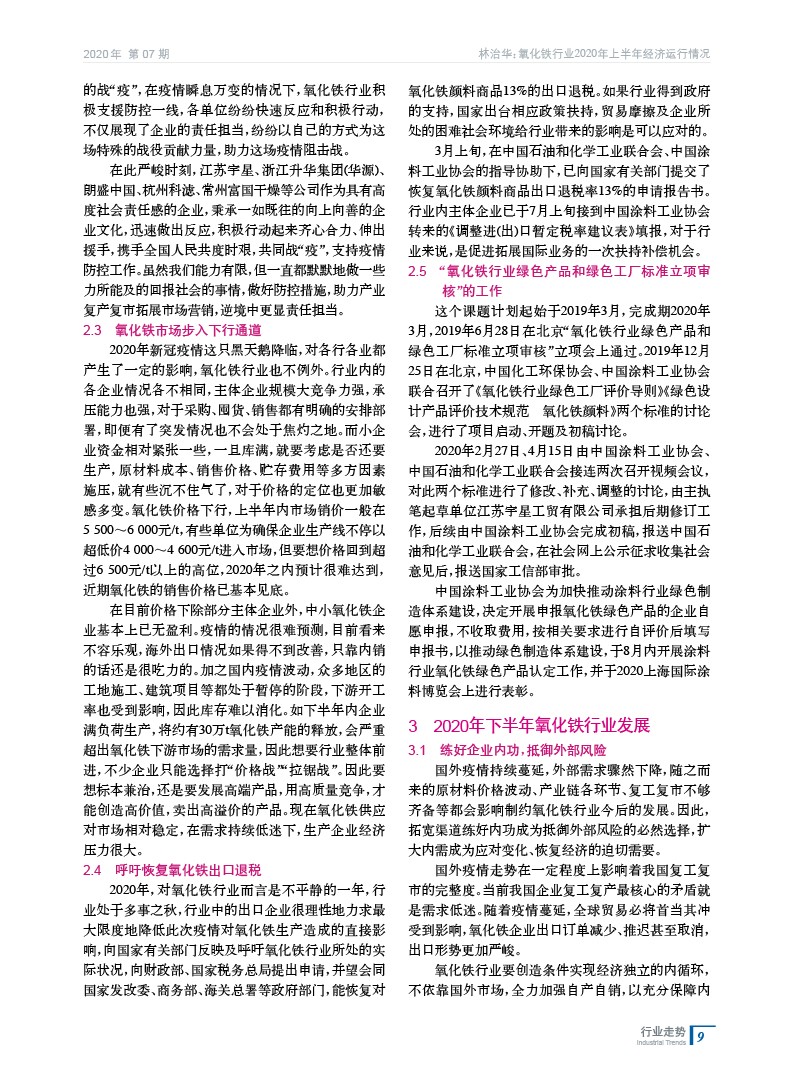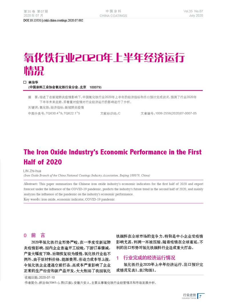 練好企業(yè)內(nèi)功,抵御外部風(fēng)險(xiǎn),為氧化鐵行業(yè)疫后發(fā)展按下“加速鍵”——氧化鐵行業(yè)2020年上半年經(jīng)濟(jì)運(yùn)行情況