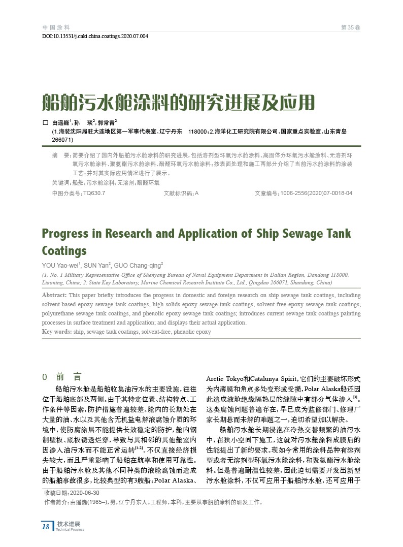 本文系作者@由遙巍,孫 琰,郭常青 授權中國涂料網(wǎng)發(fā)表,并經(jīng)中國涂料網(wǎng)編輯,未經(jīng)允許不得轉(zhuǎn)載,如需轉(zhuǎn)載請聯(lián)系chinacoatingnet@vip.163.com