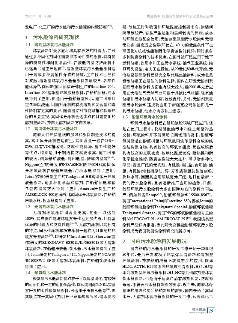 船舶污水艙涂料的研究進展及應用