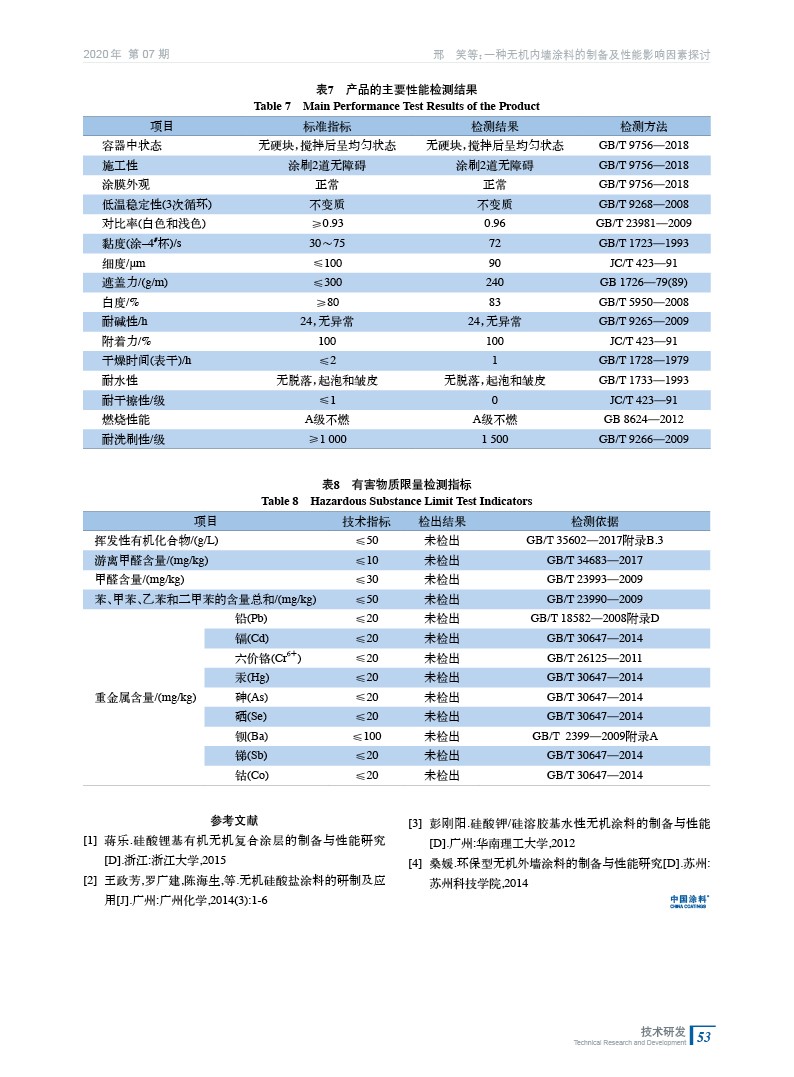 針對軌道交通項目要求,研究制備了一種無機內墻涂料。根據無機成膜物的篩選、無機成膜物的制備工藝、有機成膜物添加量以及顏填料的選擇等4個方面進行研究,最終制備出一種適合軌道交通項目的產品,目前該產品已在市場大量應用,受到客戶好評。