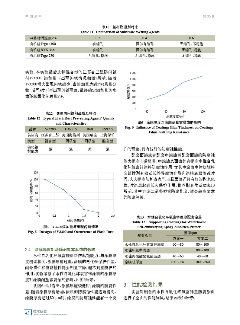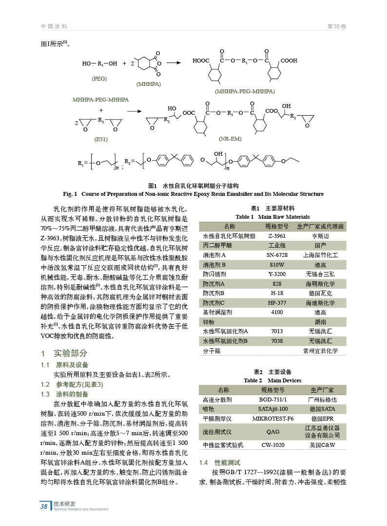 摘要:介紹了以水性自乳化環氧樹脂為基料制備環氧富鋅涂料,分別討論了水性自乳化環氧樹脂對鋅粉穩定性機理及對施工性影響、水性環氧固化劑對自乳化環氧樹脂水稀釋性和涂膜耐水、耐鹽霧的影響,以及不同助劑對涂料施工及涂膜性能的影響,推薦了適合的涂層配套方案。制備的水性自乳化環氧富鋅涂料具有優異的貯存穩定性和良好的施工性,涂膜具有優異的電化學防腐,可用于化工大氣和海洋環境的重防腐蝕。