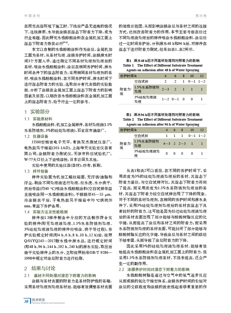 水性醇酸涂料在金屬機加工面上濕態下附著力的研究