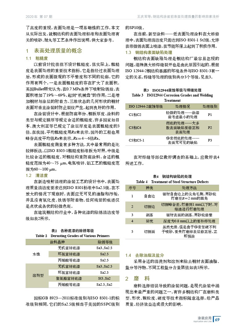 鋼結(jié)構(gòu)涂裝前表面處理質(zhì)量的影響因素淺析