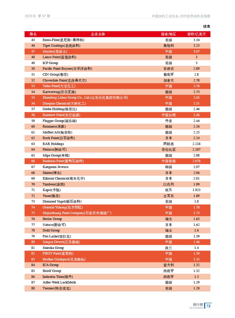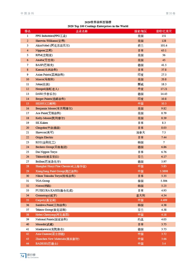 2020世界涂料百強榜