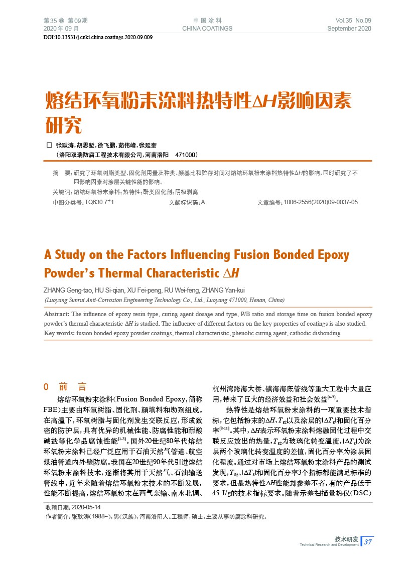 熔結環氧粉末涂料熱特性ΔH影響因素研究