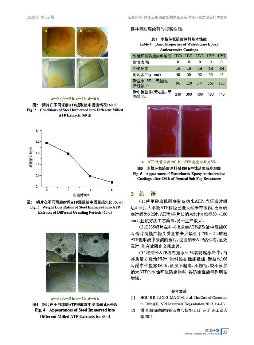 納米三聚磷酸鋁的制備及在水性環氧防腐涂料中應用