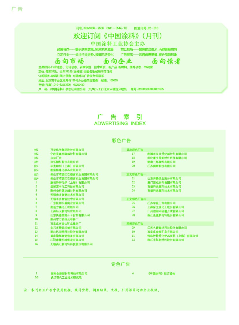 湖南金磐、武漢現代工業技術研究院、《中國涂料》征訂通知