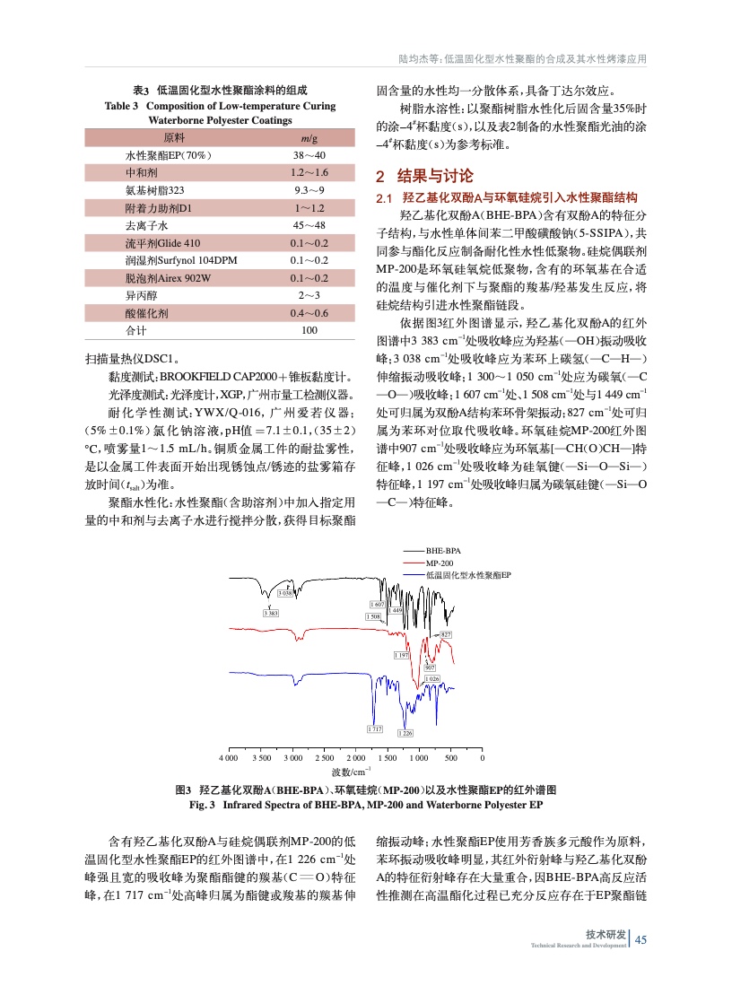 低溫固化型水性聚酯的合成及其水性烤漆應用