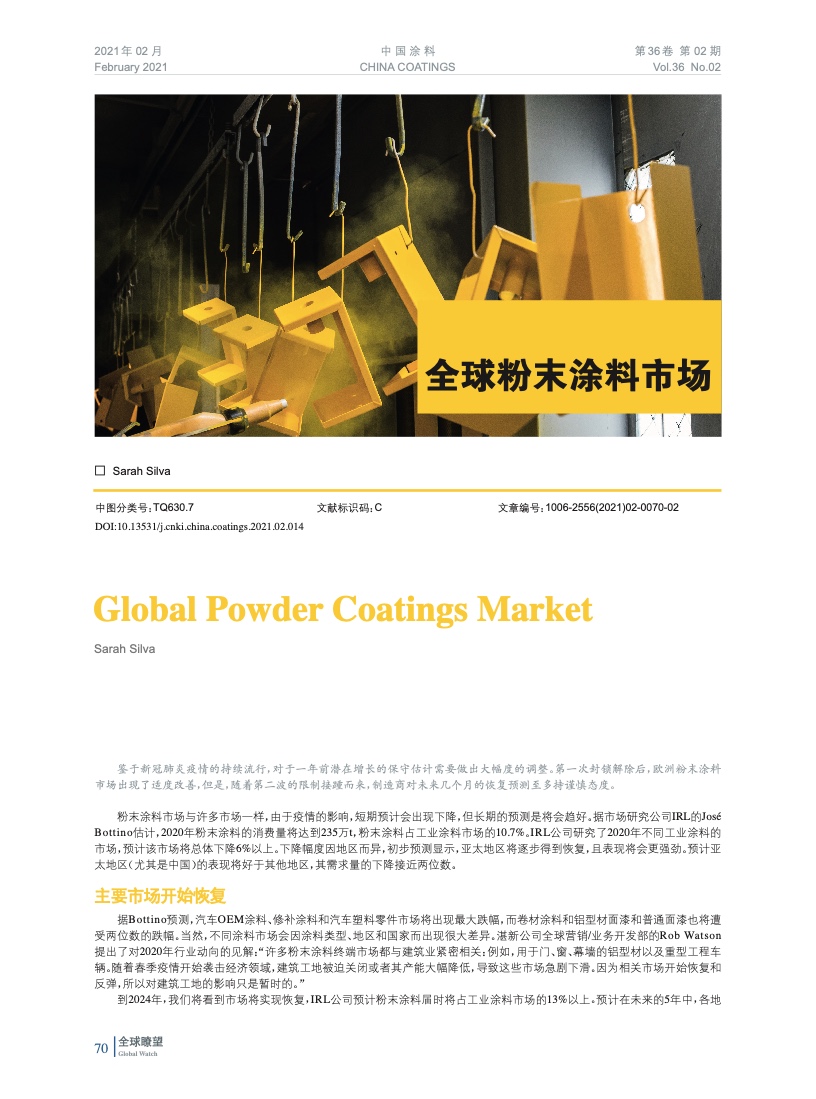 編者按:鑒于新冠肺炎疫情的持續流行,對于一年前潛在增長的保守估計需要做出大幅度的調整。第一次封鎖解除后,歐洲粉末涂料市場出現了適度改善,但是,隨著第二波的限制接踵而來,制造商對未來幾個月的恢復預測至多持謹慎態度。