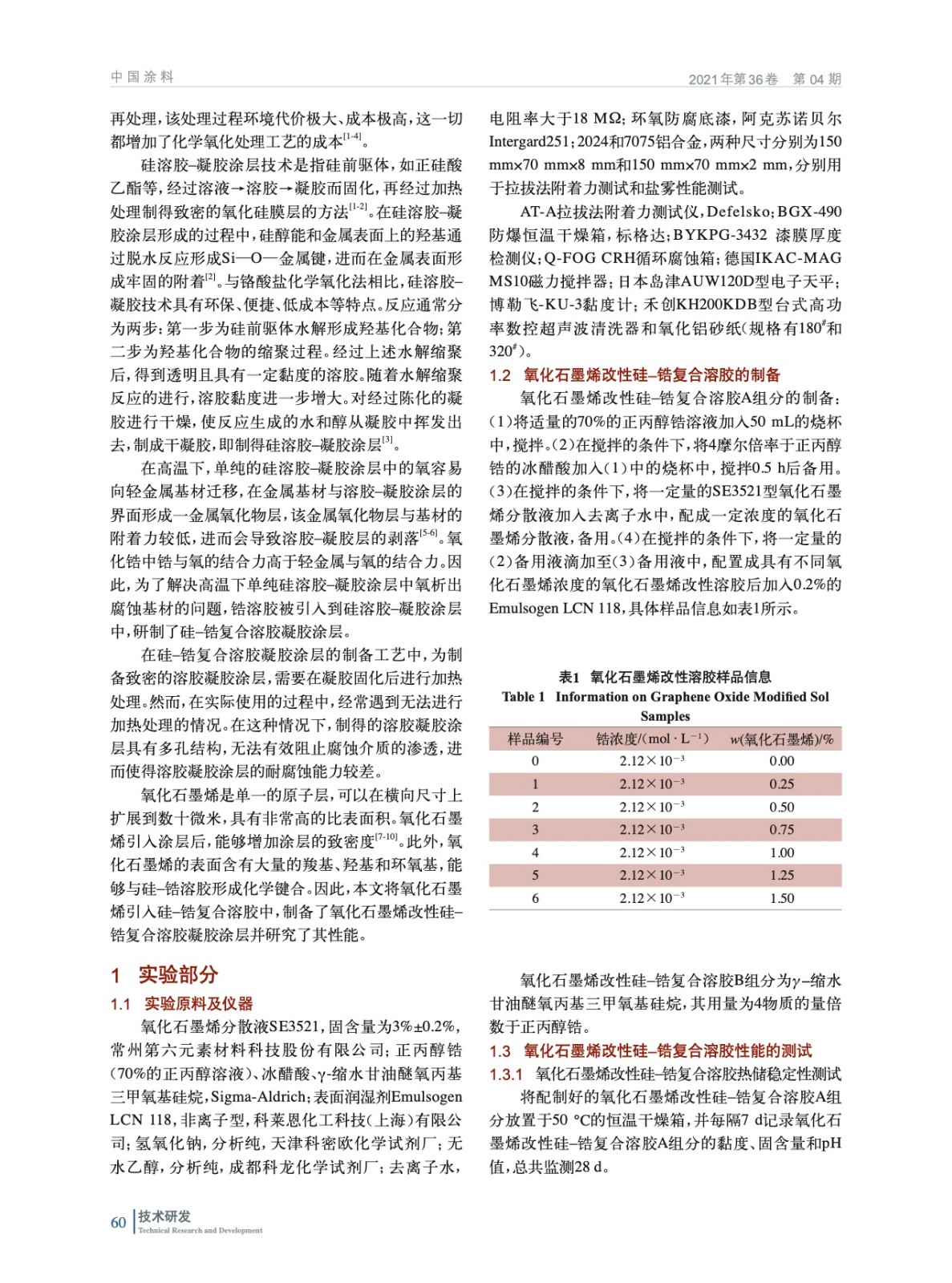 氧化石墨烯改性硅-鋯復(fù)合溶膠凝膠涂層的制備與性能研究