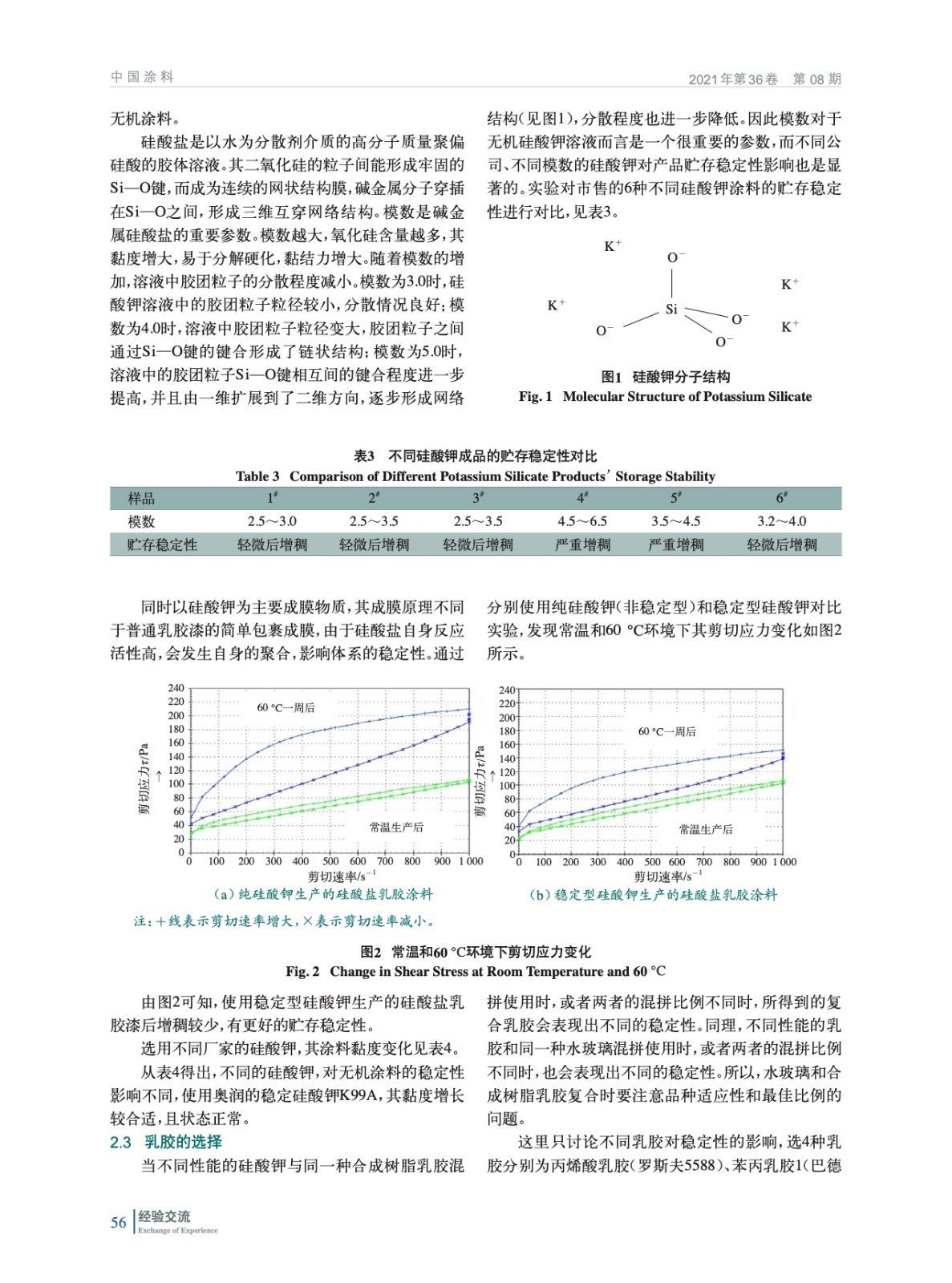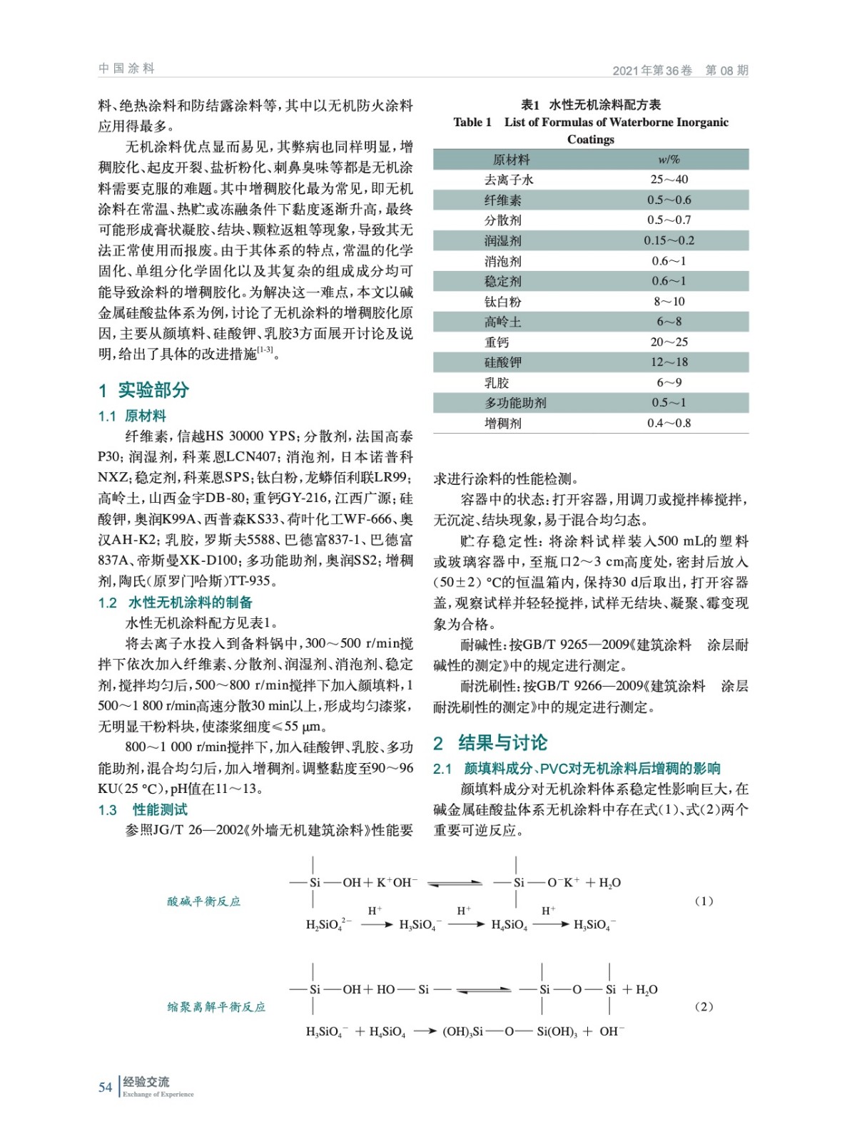 摘要:以硅酸鉀體系無(wú)機(jī)涂料為例,分析水性無(wú)機(jī)建筑涂料增稠膠化原因,主要從顏填料、硅酸鉀、乳膠等方面進(jìn)行分析,通過(guò)實(shí)驗(yàn)驗(yàn)證,得出如何選擇原料使體系穩(wěn)定性最佳。