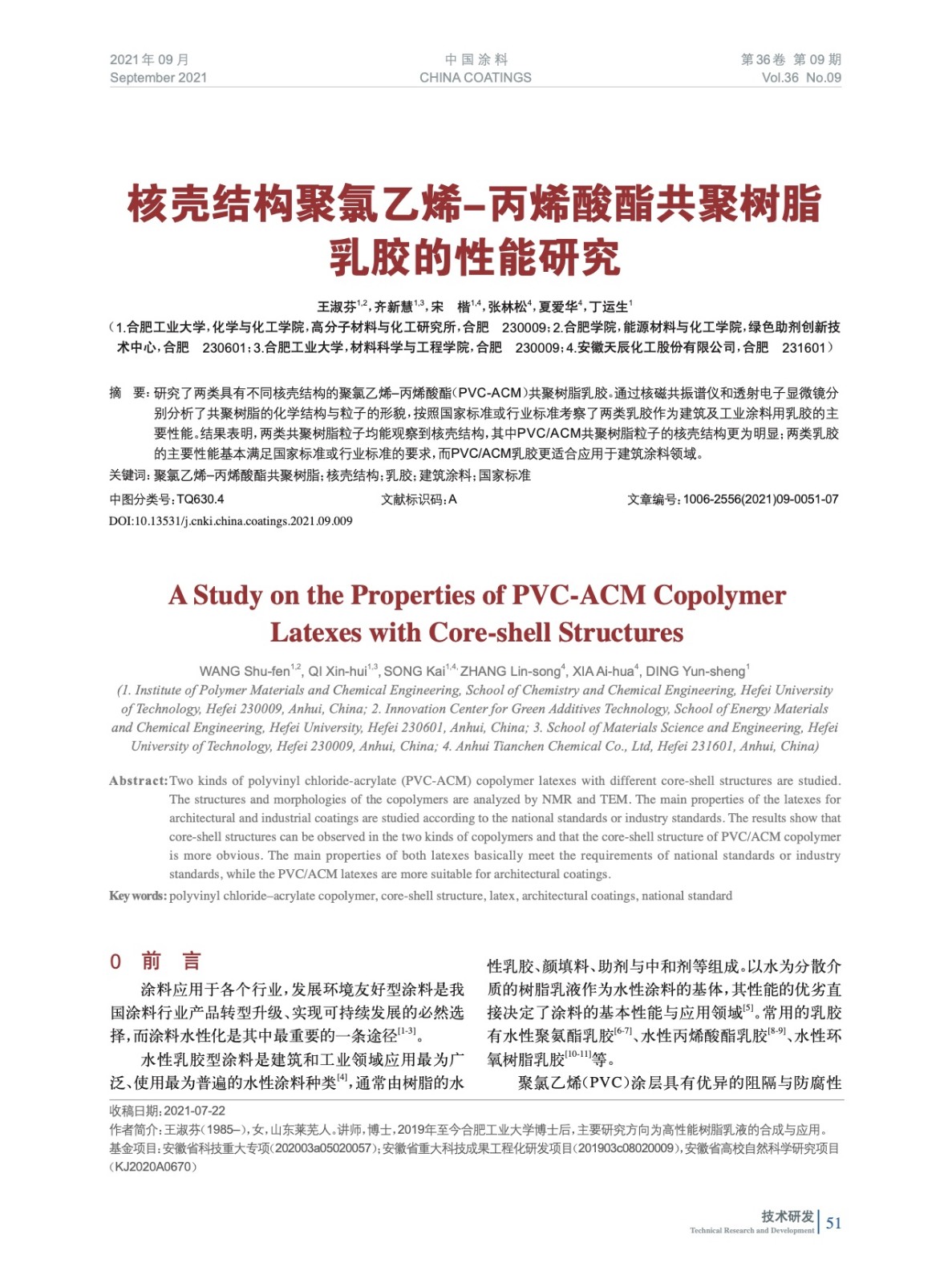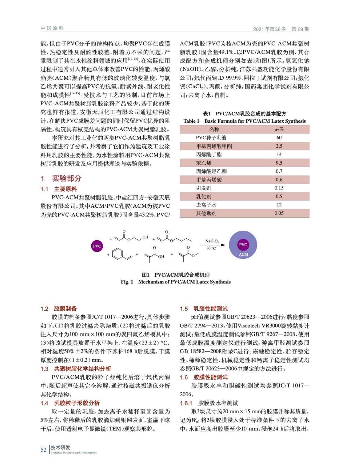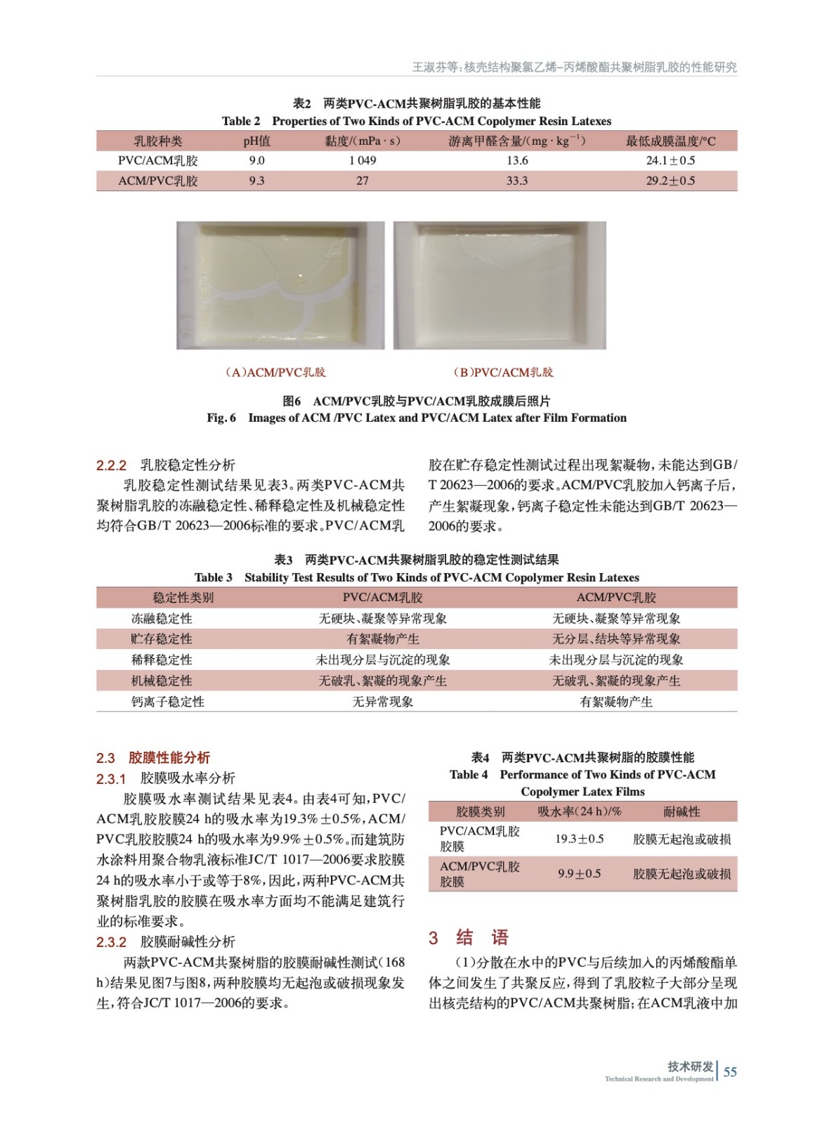 核殼結(jié)構(gòu)聚氯乙烯–丙烯酸酯共聚樹脂乳膠的性能研究