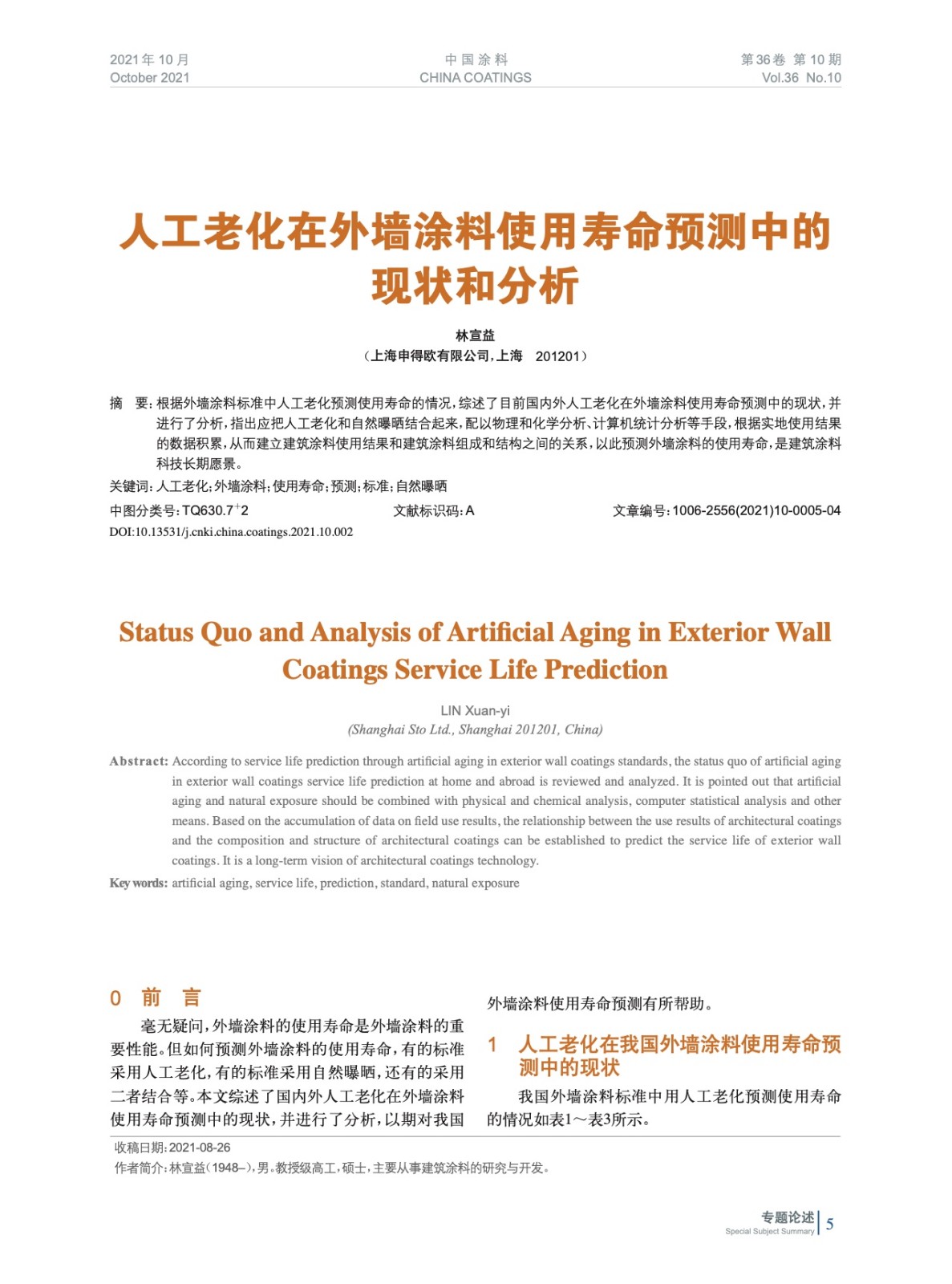 人工老化在外墻涂料使用壽命預測中的現狀和分析