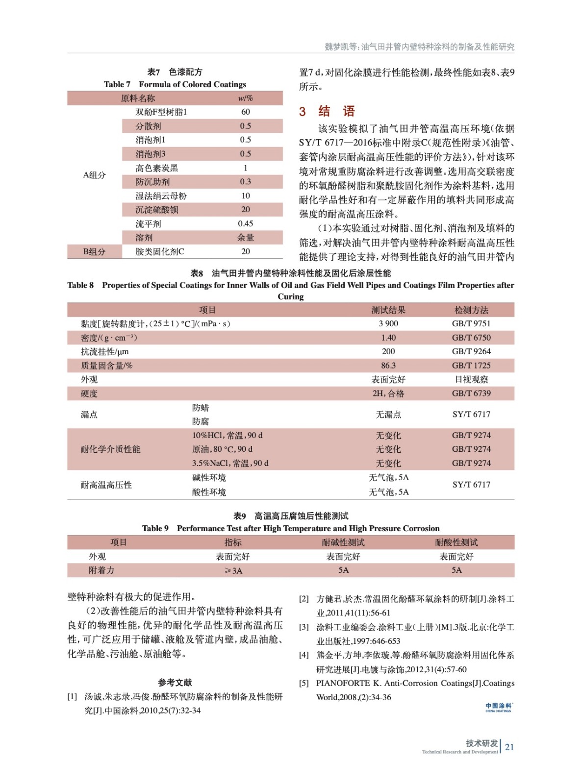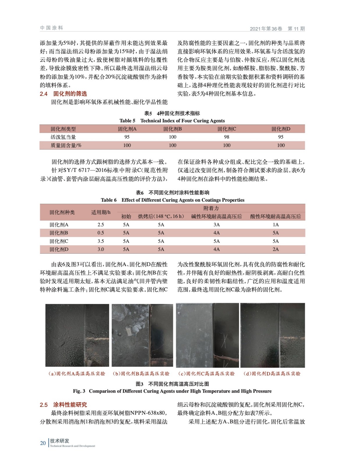 摘要:為滿足油氣田井管內涂層技術條件,即SY/T 6717—2016《油管和套管內涂層技術條件》中關鍵性指標——酸性(堿性)條件下耐高溫高壓性能,使用高溫高壓反應釜系統,根據標準要求模擬酸性(堿性)條件下不同涂層樣品的耐高溫高壓性現象,分別從樹脂、固化劑、助劑體系以及填料等方面研究改善油氣田井管內壁特種涂料產品性能。使產品達到性能要求,滿足在油氣田井管內壁應用條件。