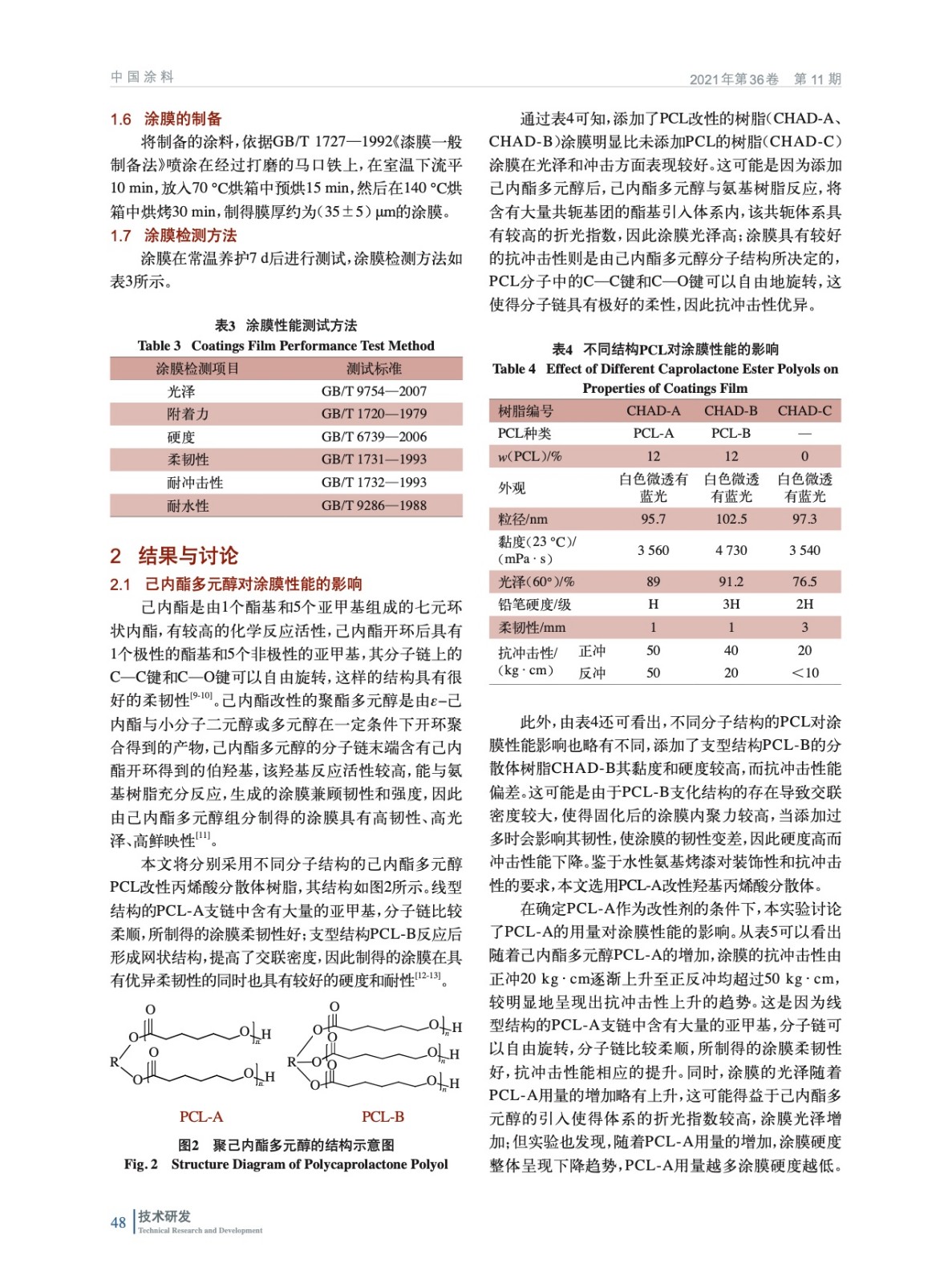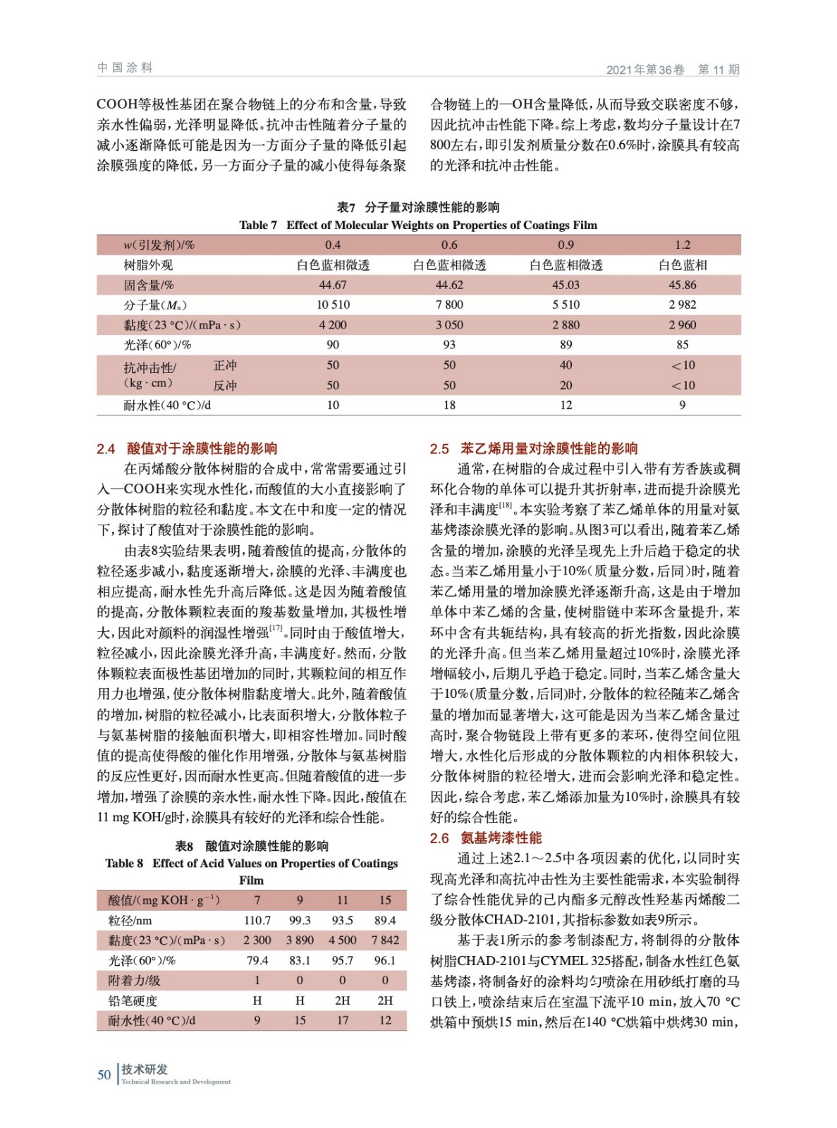 摘要:以己內酯改性聚酯多元醇PCL-A作為活性稀釋劑,制備出了高光澤高抗沖擊性的羥基丙烯酸二級分散體,實驗結果表明:當以丙二醇丁醚和醋酸丁酯組成的混合溶劑作為聚合介質,PCL-A質量分數為12%,分子量約為7800,酸值為11 mgKOH/g時合成的丙烯酸分散體具有優異的光澤和機械性能,其與氨基樹脂配合制成的水性氨基烤漆具有優異的光澤、鮮映性和抗沖擊性,能很好地滿足水性氨基烤漆在高溫烘烤后的性能要求。