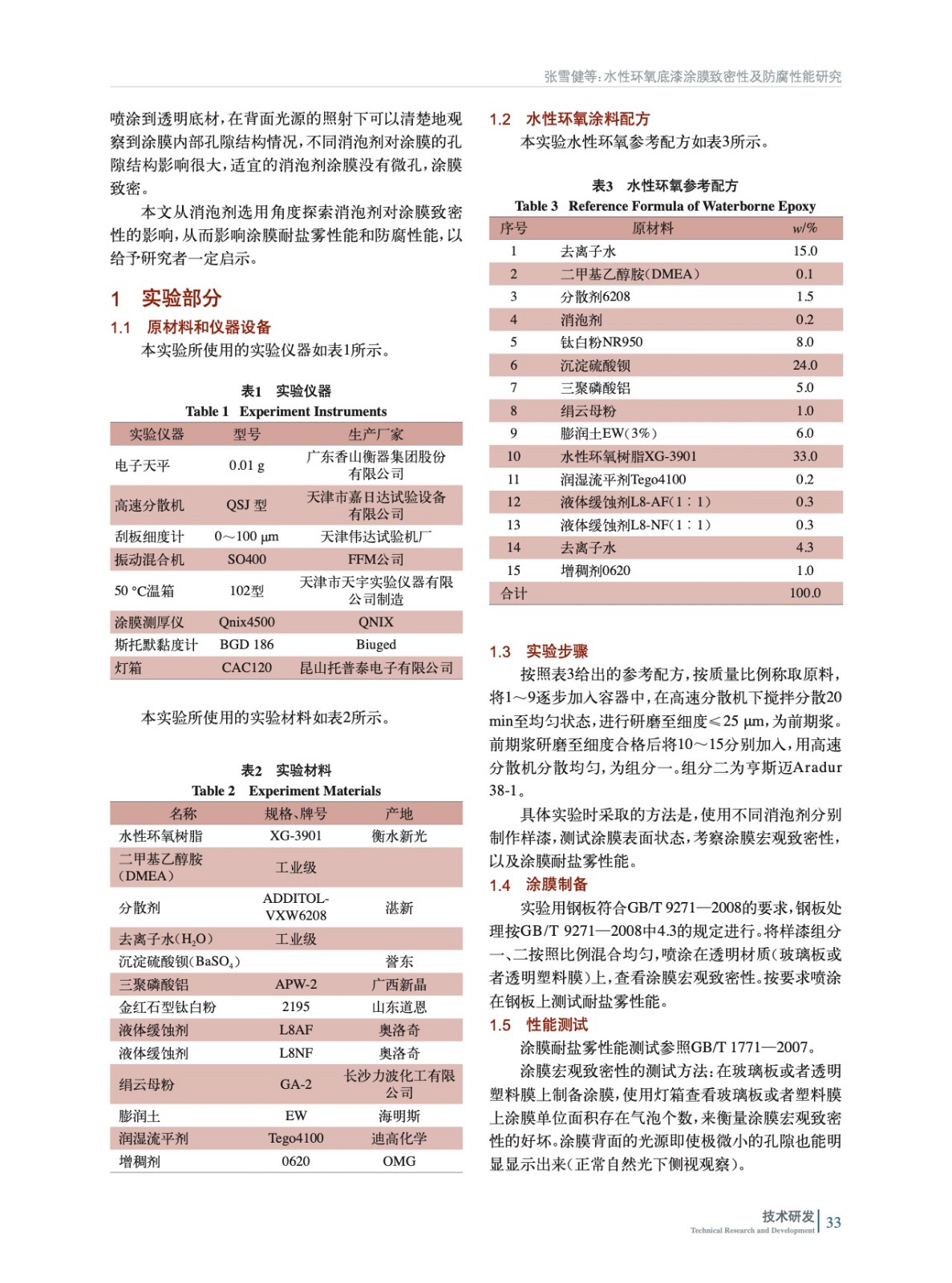 水性環氧底漆涂膜致密性及防腐性能研究