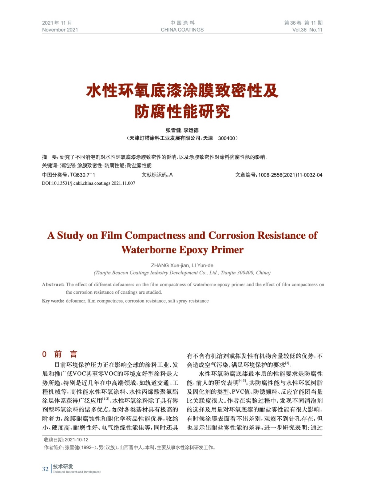 本文系作者@張雪健,李運德 授權中國涂料網發表,并經中國涂料網編輯,未經允許不得轉載,如需轉載請聯系chinacoatingnet@vip.163.com