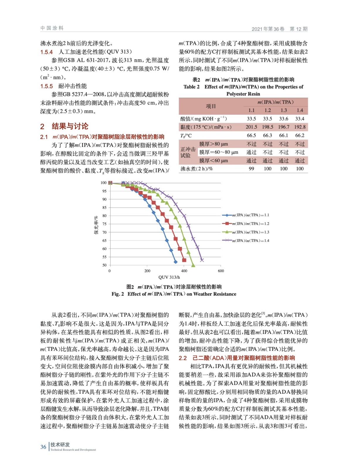 摘要:研究了不同間苯二甲酸/對苯二甲酸(IPA/TPA)質量比、己二酸(ADA)用量、多元醇對聚酯樹脂性能的影響,確定了最佳聚酯樹脂合成配方,并研究了顏料、表面和成膜物含量對聚酯樹脂粉末涂料性能的影響。結果表明:制備的聚酯樹脂具有優異的耐候性和良好的機械性能。