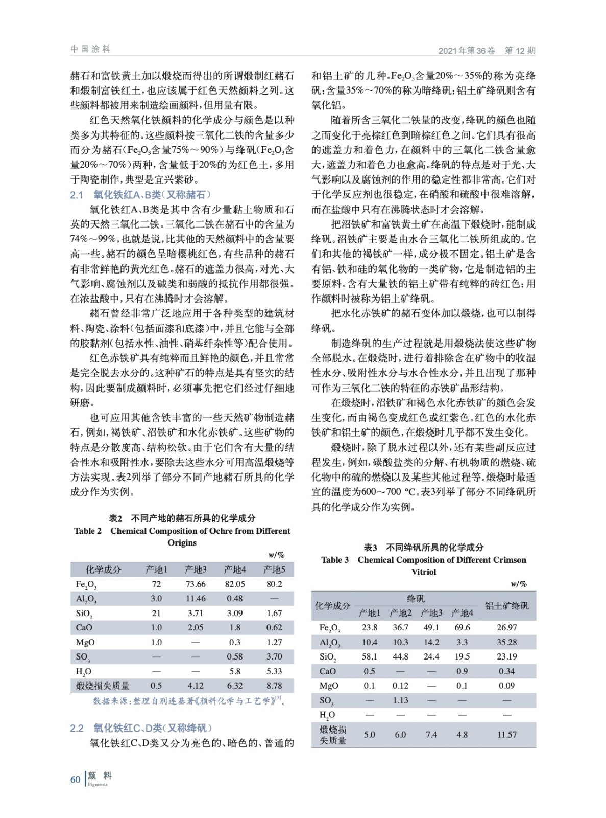 基于天然氧化鐵顏料發現的歷史,就紅色、黃色、棕色、黑色天然氧化鐵顏料以及特殊變體云母氧化鐵的化學特征、產地分布、現代應用進行詳細闡述,并分析比較各自生產工藝與質量標準,以期為相關從業者和研究人員在天然氧化鐵顏料的生產、加工以及使用提供技術依據與科學指導。