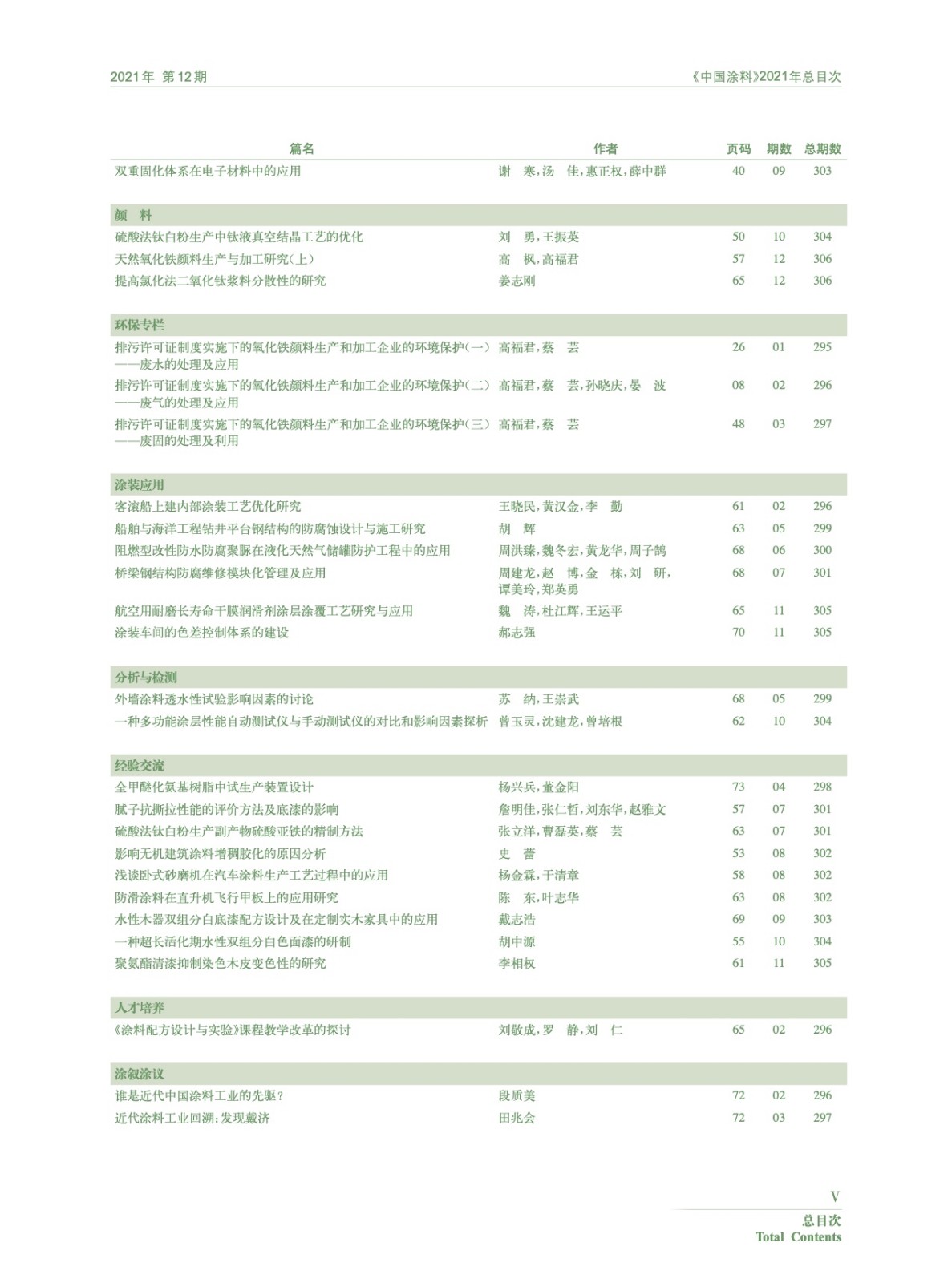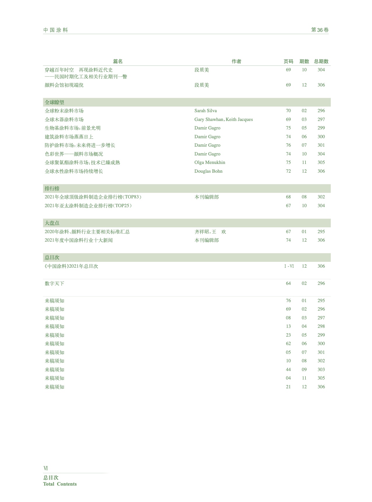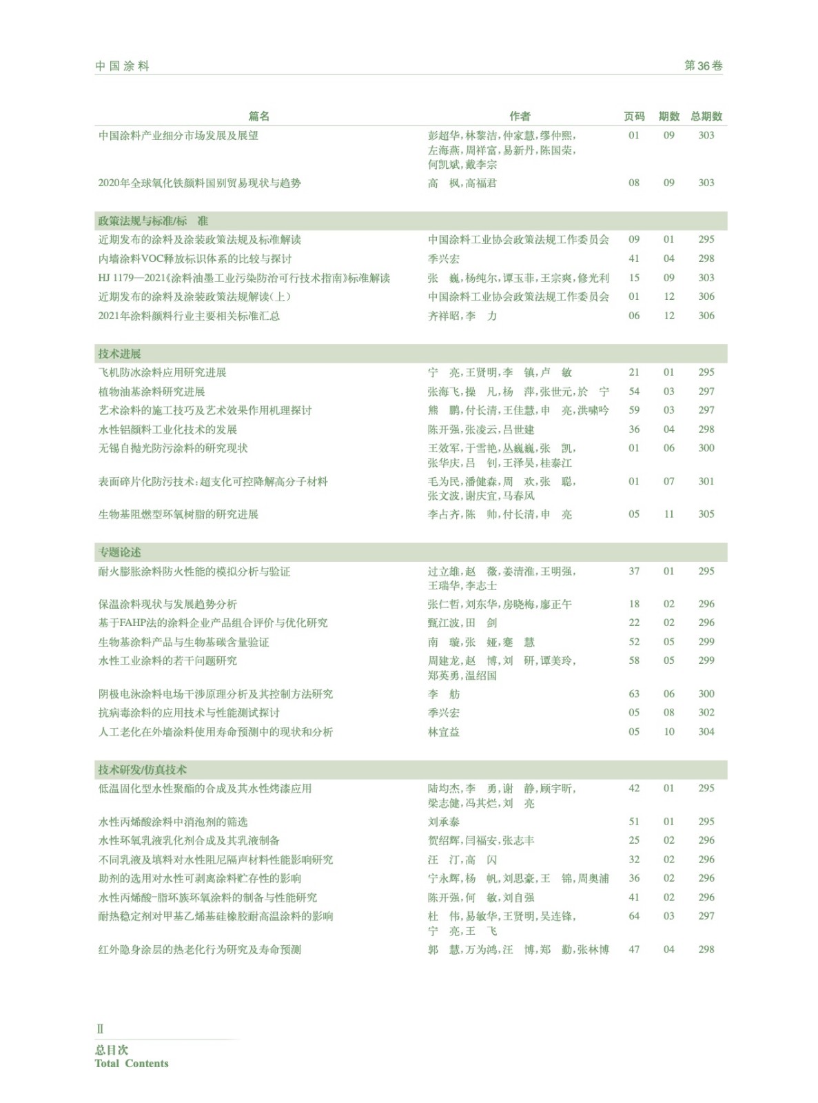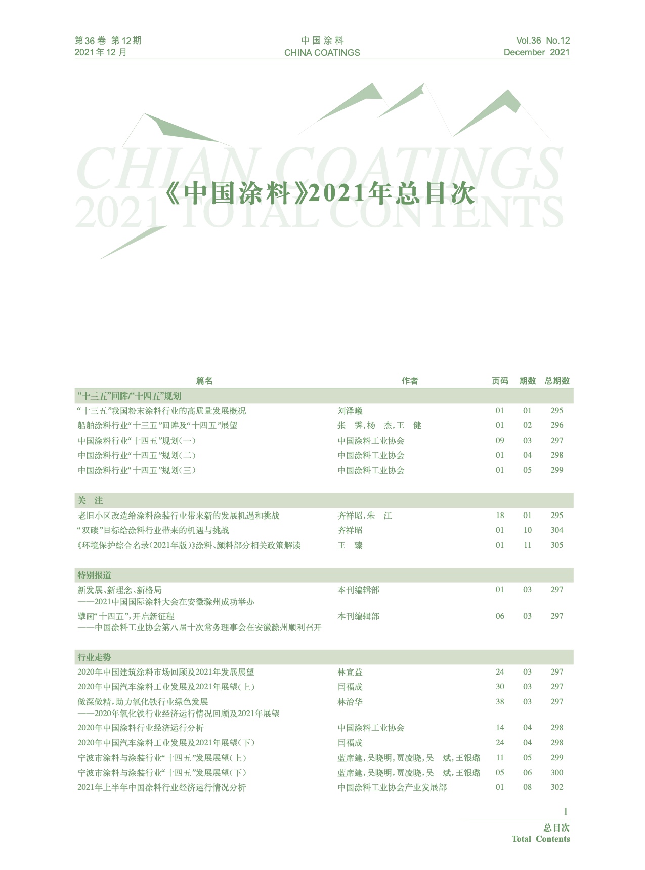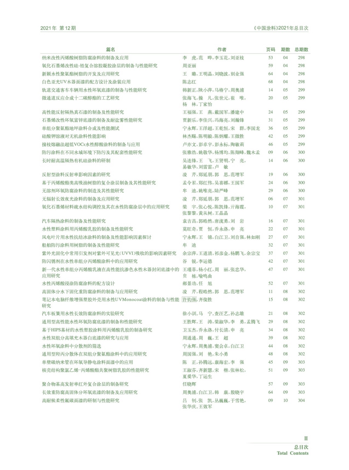 《中國涂料》2021年總目次