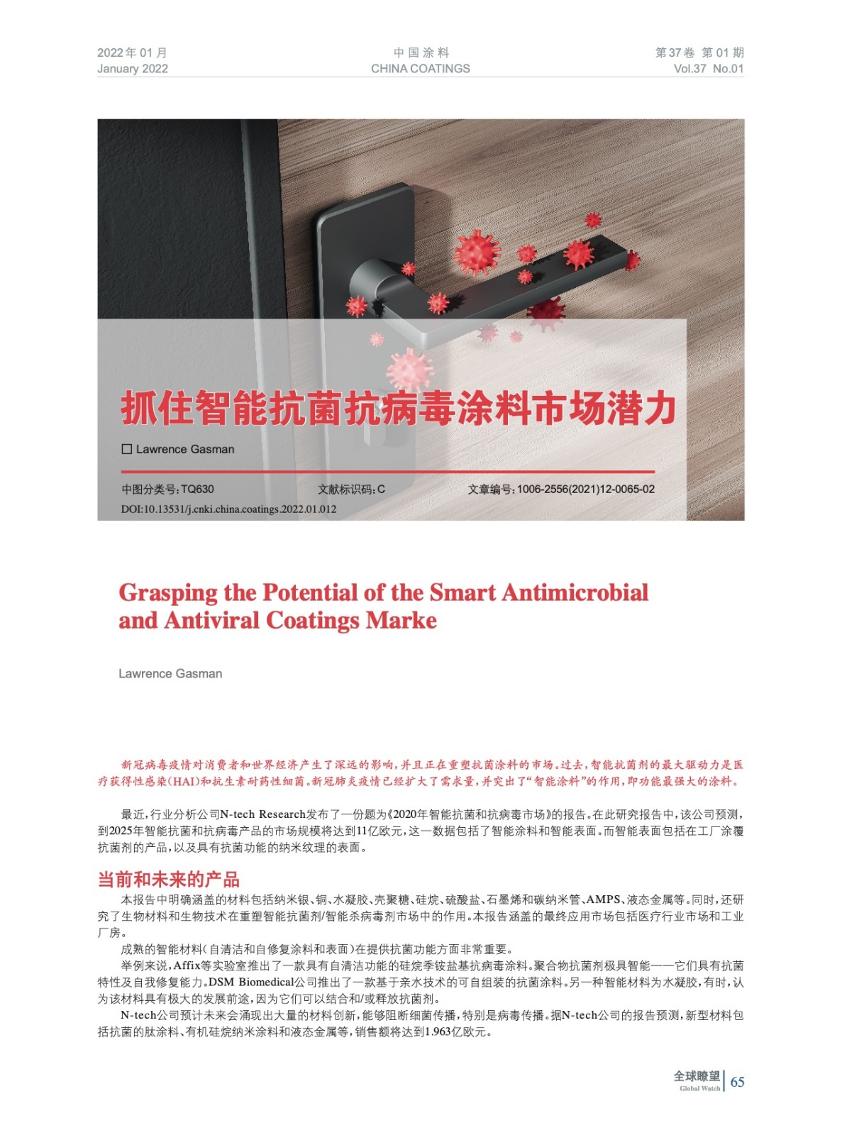 編者按:新冠病毒疫情對消費者和世界經濟產生了深遠的影響,并且正在重塑抗菌涂料的市場。過去,智能抗菌劑的最大驅動力是醫療獲得性感染(HAI)和抗生素耐藥性細菌。新冠肺炎疫情已經擴大了需求量,并突出了“智能涂料”的作用,即功能最強大的涂料。
