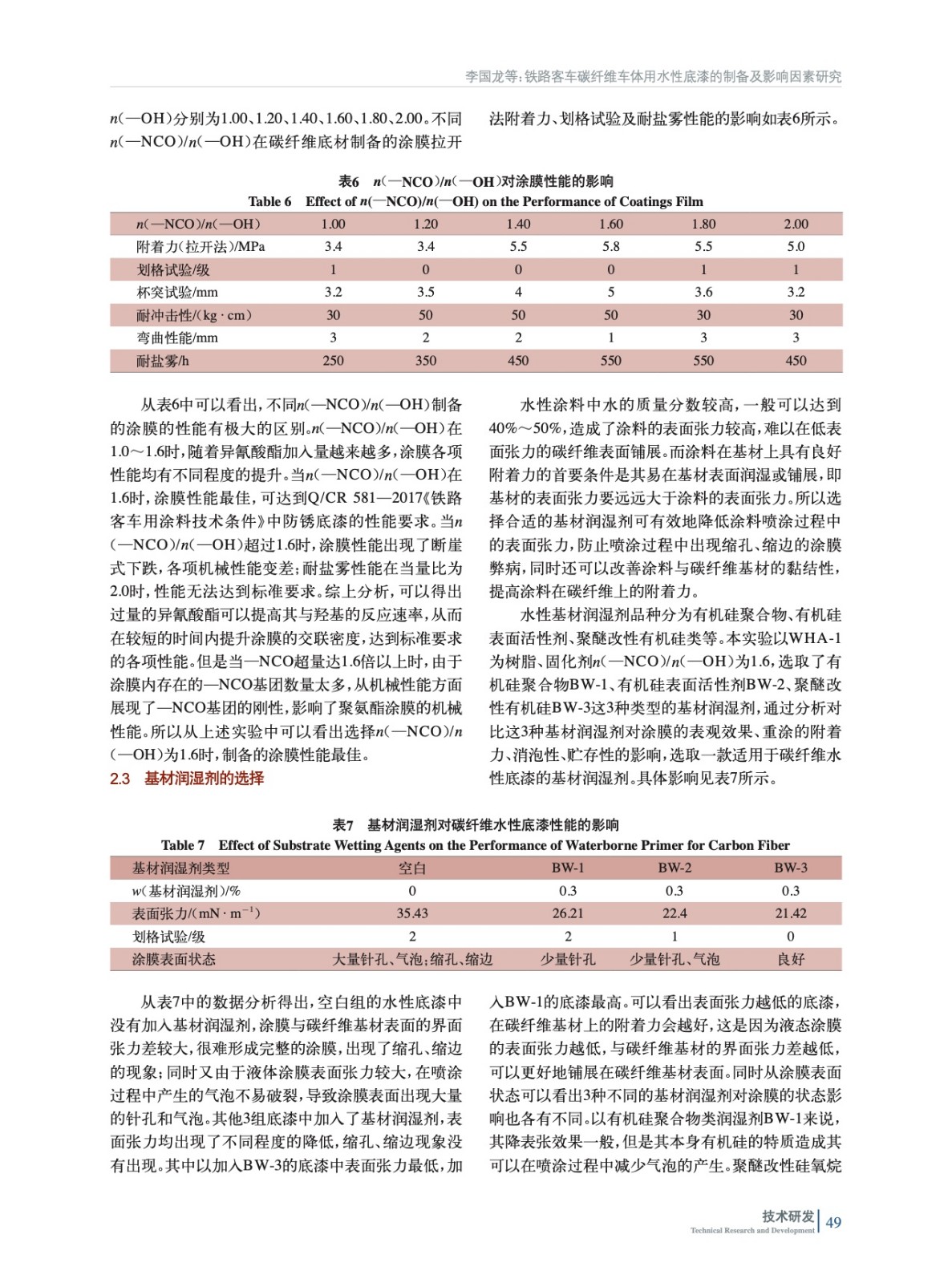 鐵路客車碳纖維車體用水性底漆的制備及影響因素研究