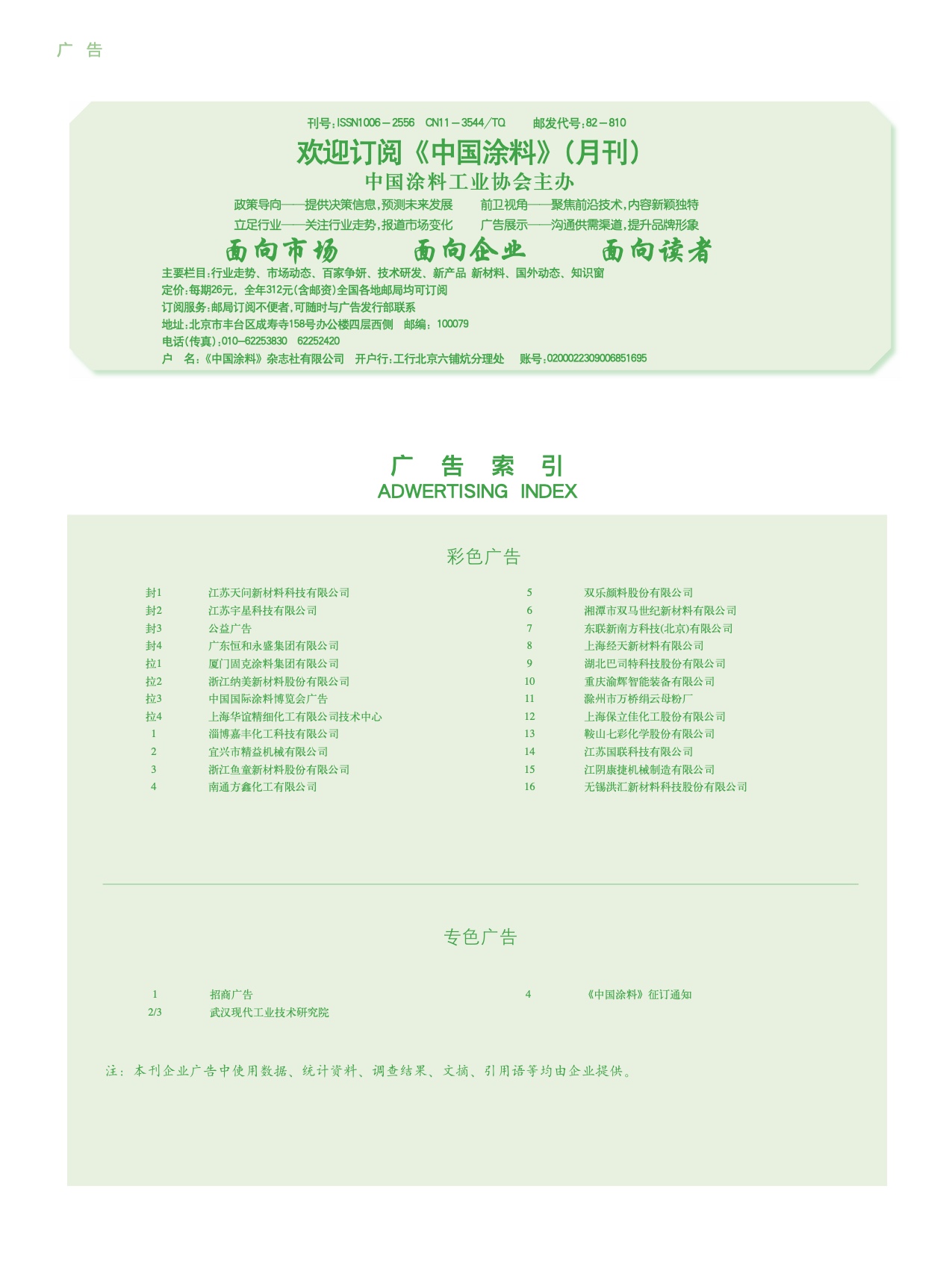 招商廣告、武漢現(xiàn)代、《中國涂料》征訂通知
