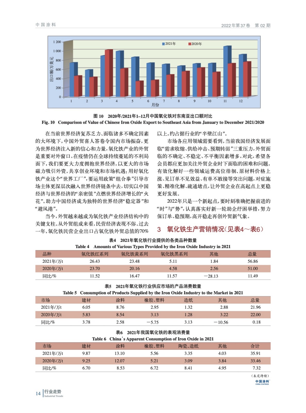 摘要:綜述了2021年中國氧化鐵行業所處的經濟環境,梳理了各項技術經濟指標完成情況、生產營銷情況,并對行業進出口數據進行了分析,從能耗、標準等回顧了氧化鐵行業2021年發展狀況,并展望了2022年發展方向,并指出了行業發展方向。