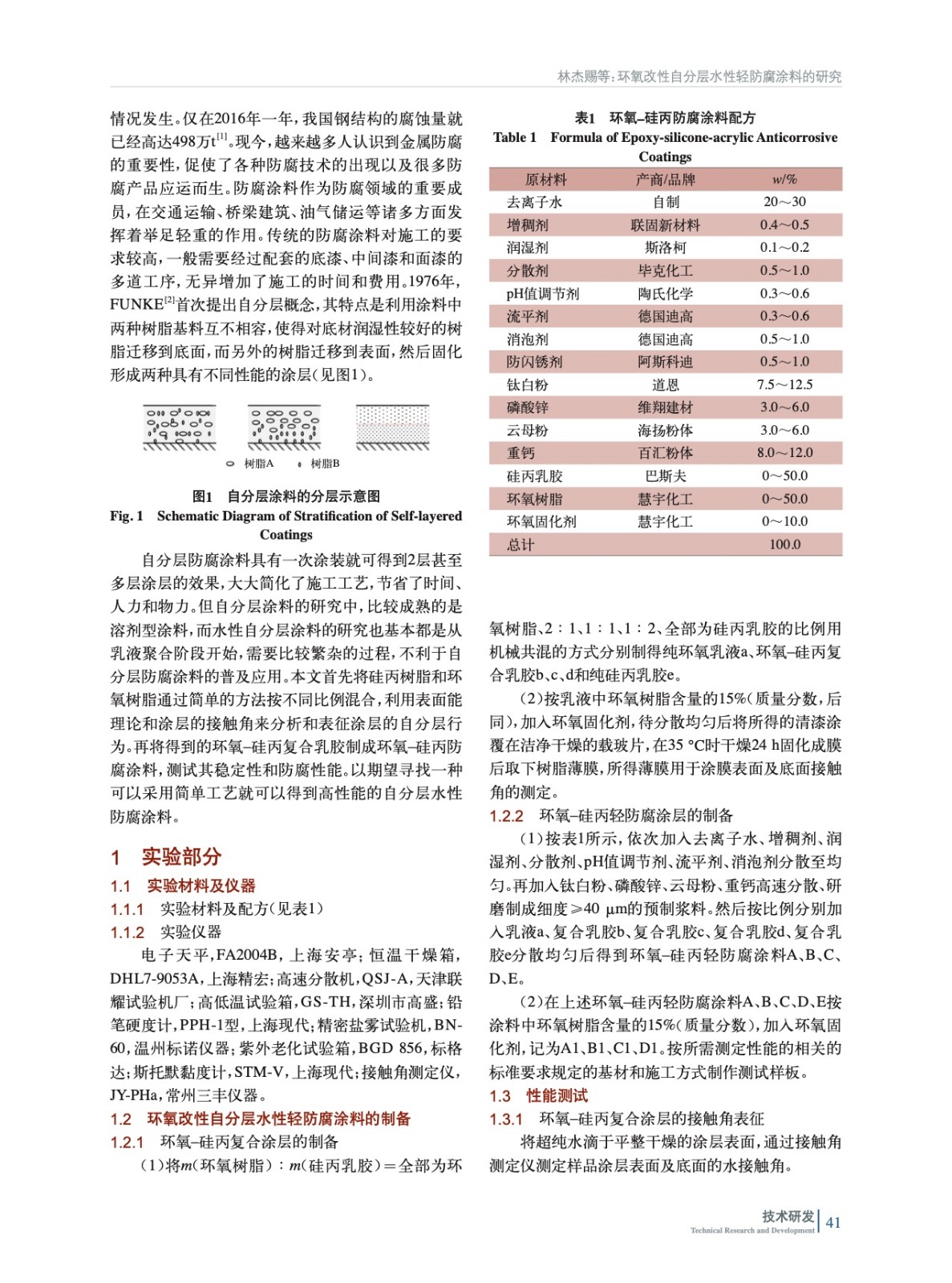 環(huán)氧改性自分層水性輕防腐涂料的研究