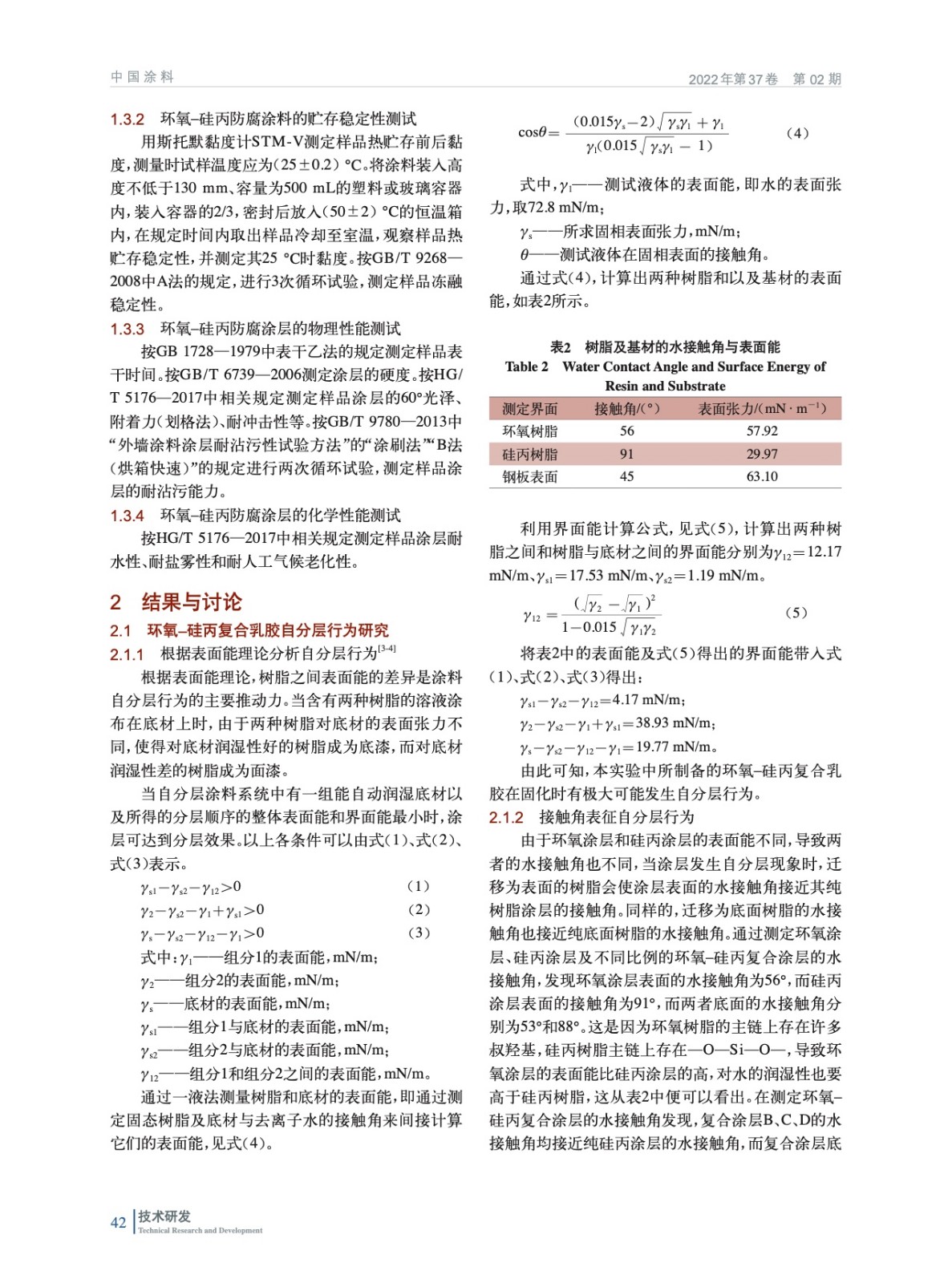 摘要:通過(guò)機(jī)械共混的方式將水性環(huán)氧樹(shù)脂與硅丙乳膠進(jìn)行復(fù)配,并添加防腐顏料、填料及各種助劑制備出一種自分層水性輕防腐涂料。進(jìn)行表征發(fā)現(xiàn)純環(huán)氧涂層的水接觸角為56°、純硅丙涂層的水接觸角為91°,而環(huán)氧樹(shù)脂與硅丙乳膠經(jīng)過(guò)2∶1、1∶1、1∶2復(fù)配所得的涂層水接觸角分別為87°、89°、90°,并預(yù)測(cè)了復(fù)合涂層的自分層現(xiàn)象。結(jié)果表明,復(fù)合涂層在經(jīng)過(guò)120 h耐鹽霧測(cè)試后涂膜無(wú)異常,力學(xué)性能優(yōu)異。