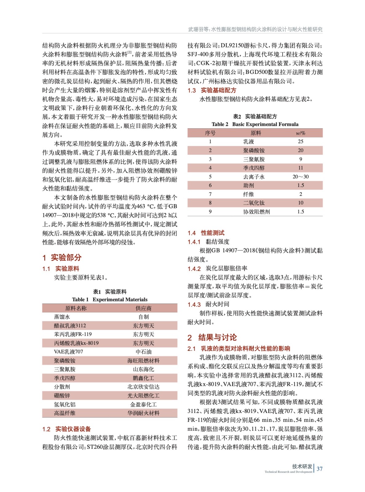 水性膨脹型鋼結(jié)構(gòu)防火涂料的設(shè)計與耐火性能研究