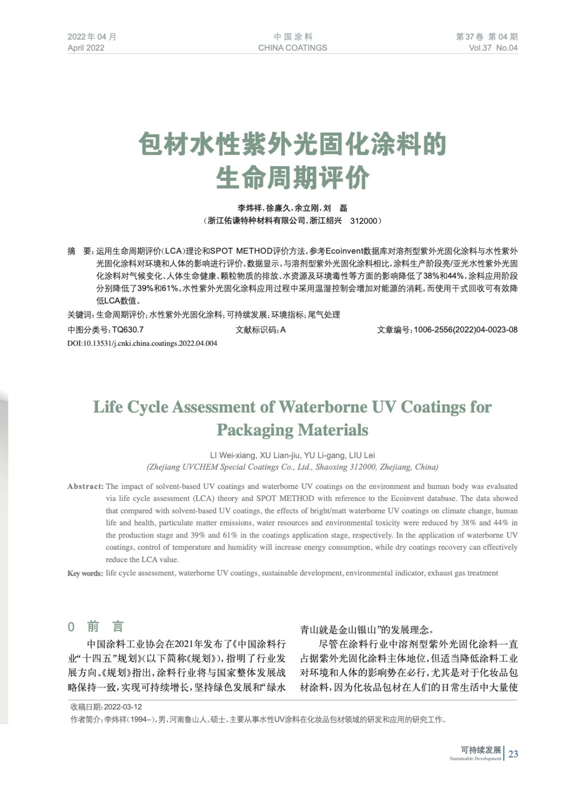 本文系作者@李煒祥,徐廉久,余立剛,劉 磊 授權中國涂料網發表,并經中國涂料網編輯,未經允許不得轉載,如需轉載請聯系chinacoatingnet@vip.163.com