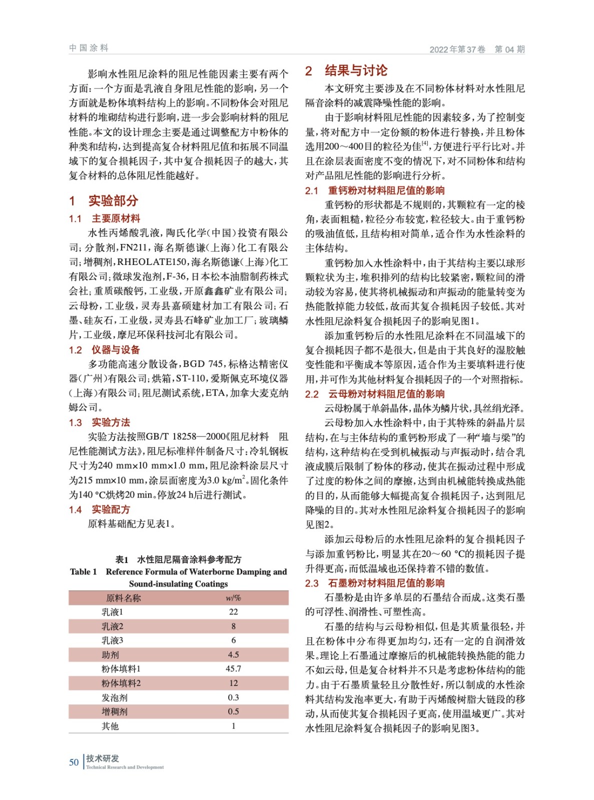 粉體填料對(duì)水性阻尼涂料阻尼性能的影響