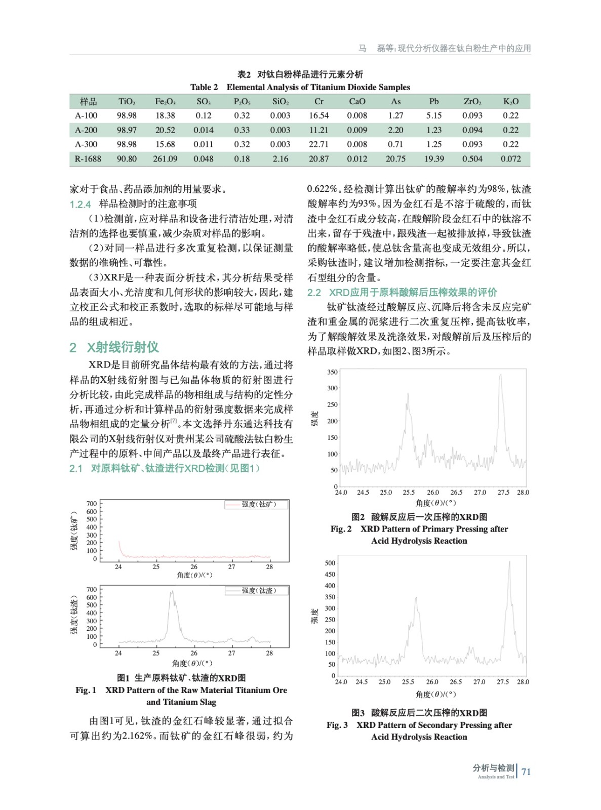 摘要:以幾X射線熒光光譜儀、X射線衍射儀、激光粒度儀、透射電鏡等大型分析儀器對鈦白粉在生產過程中的檢測效果為例,介紹如何通過儀器檢測實現對鈦白粉的定性、定量分析并對鈦白成品進行一定的效果評價,通過分析檢測的結果解決生產中遇到的難點和問題。