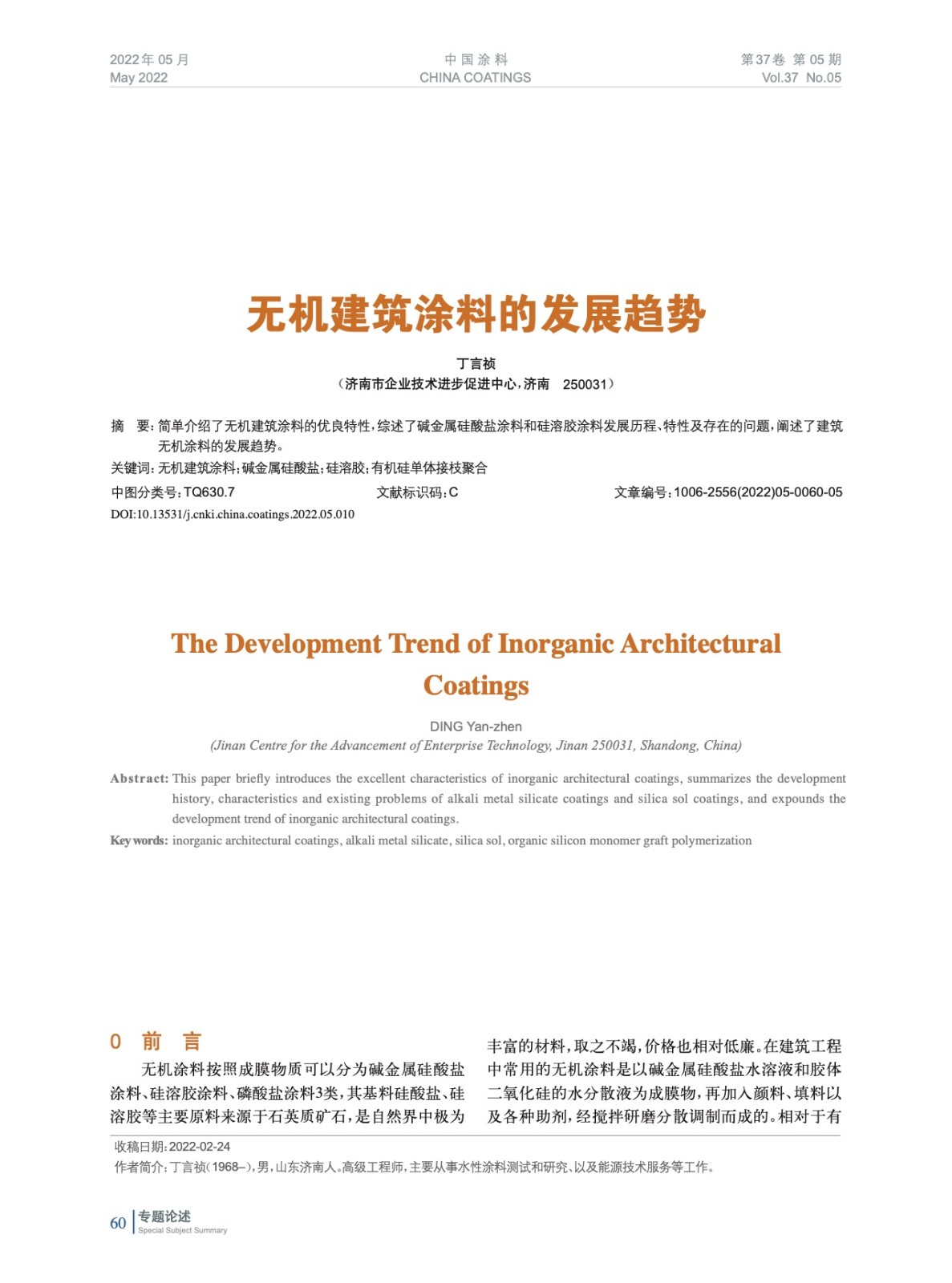 簡單介紹了無機建筑涂料的優良特性,綜述了堿金屬硅酸鹽涂料和硅溶膠涂料發展歷程、特性及存在的問題,闡述了建筑無機涂料的發展趨勢。