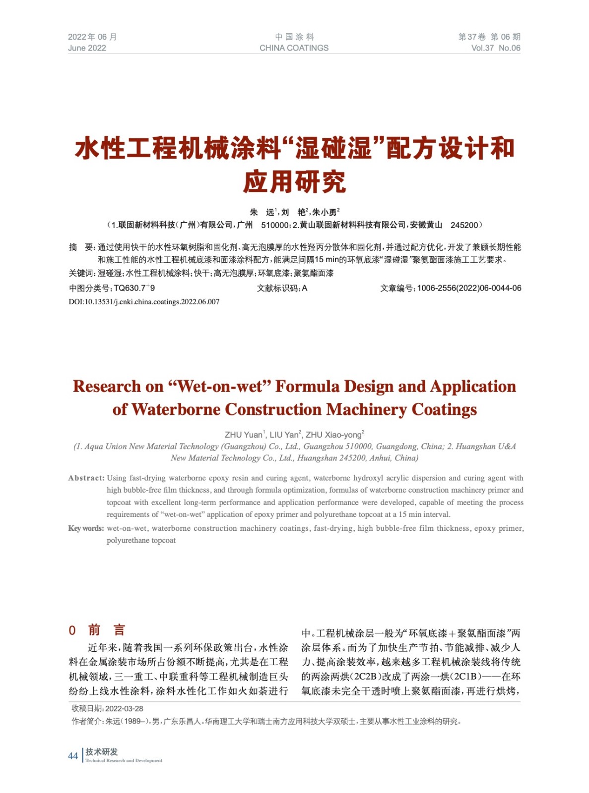 本文系作者@朱 遠,劉 艷,朱小勇 授權中國涂料網發表,并經中國涂料網編輯,未經允許不得轉載,如需轉載請聯系chinacoatingnet@vip.163.com