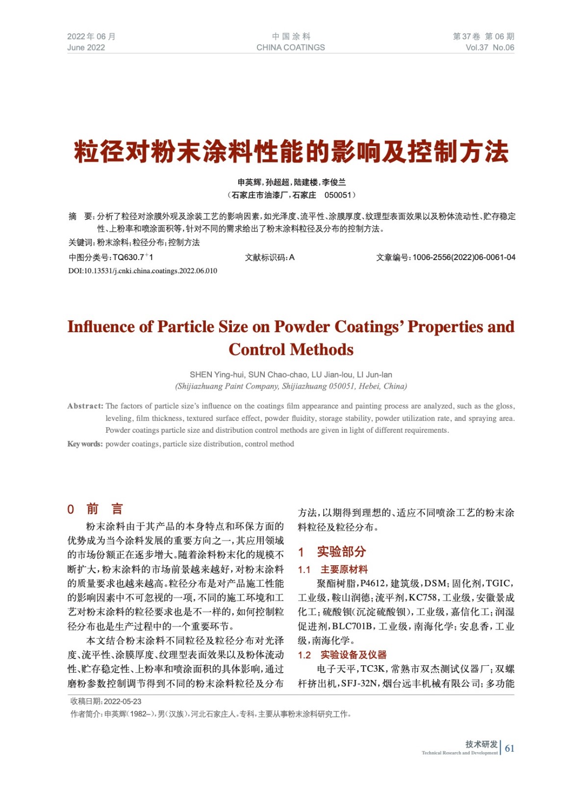 本文系作者@申英輝,孫超超,陸建樓,李俊蘭 授權中國涂料網發表,并經中國涂料網編輯,未經允許不得轉載,如需轉載請聯系chinacoatingnet@vip.163.com