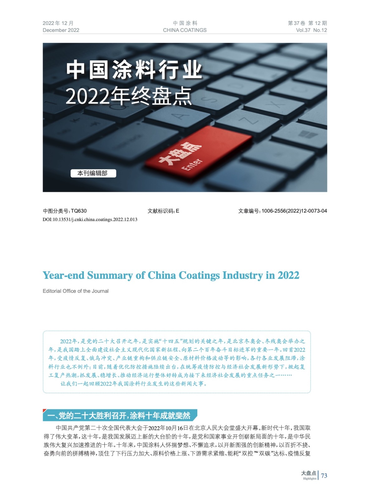 摘要:編者按:回首2022年,受疫情反復、俄烏沖突、產業鏈重構和供應鏈安全、原材料價格波動等的影響,各行各業發展阻滯,涂料行業也不例外;目前,隨著優化防控措施陸續出臺,在統籌疫情防控與經濟社會發展新形勢下,掀起復工復產熱潮,抓發展、穩增長、推動經濟運行整體好轉成為接下來經濟社會發展的重點任務之一……讓我們一起回顧2022年我國涂料行業發生的這些新聞大事。