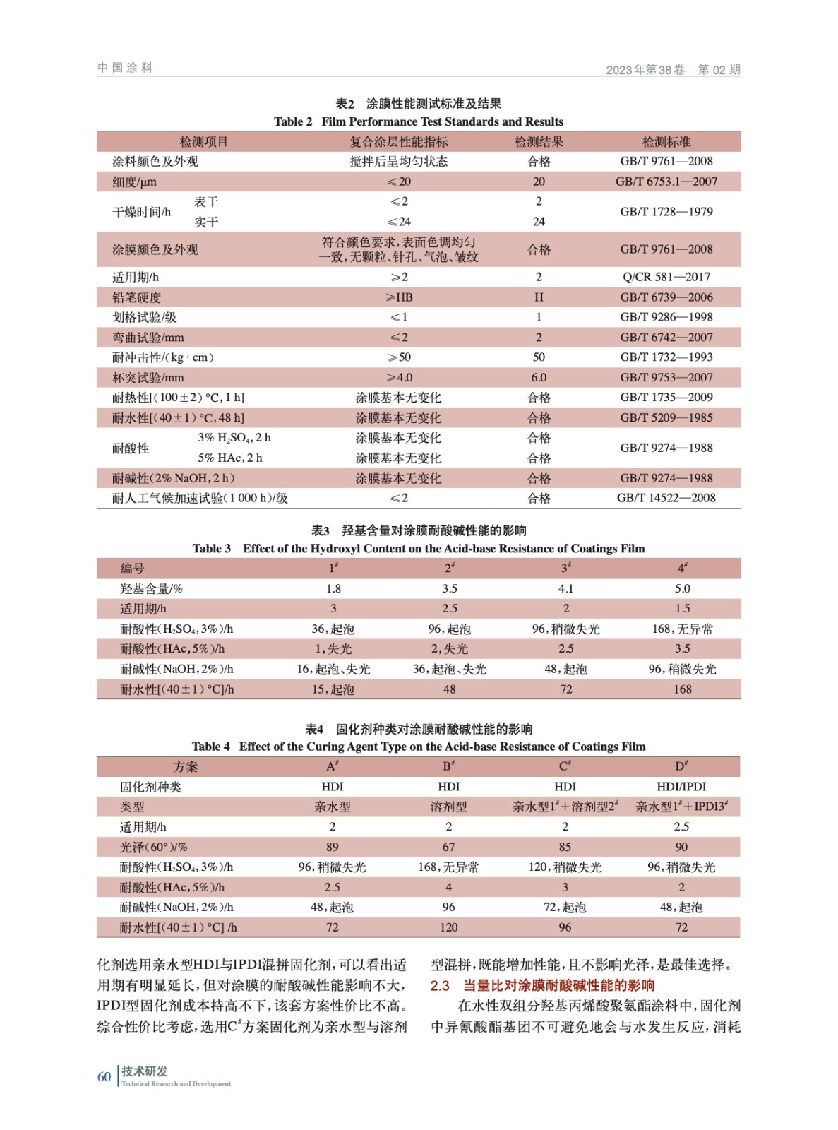 水性雙組分丙烯酸聚氨酯面漆耐酸堿性能的影響因素探討