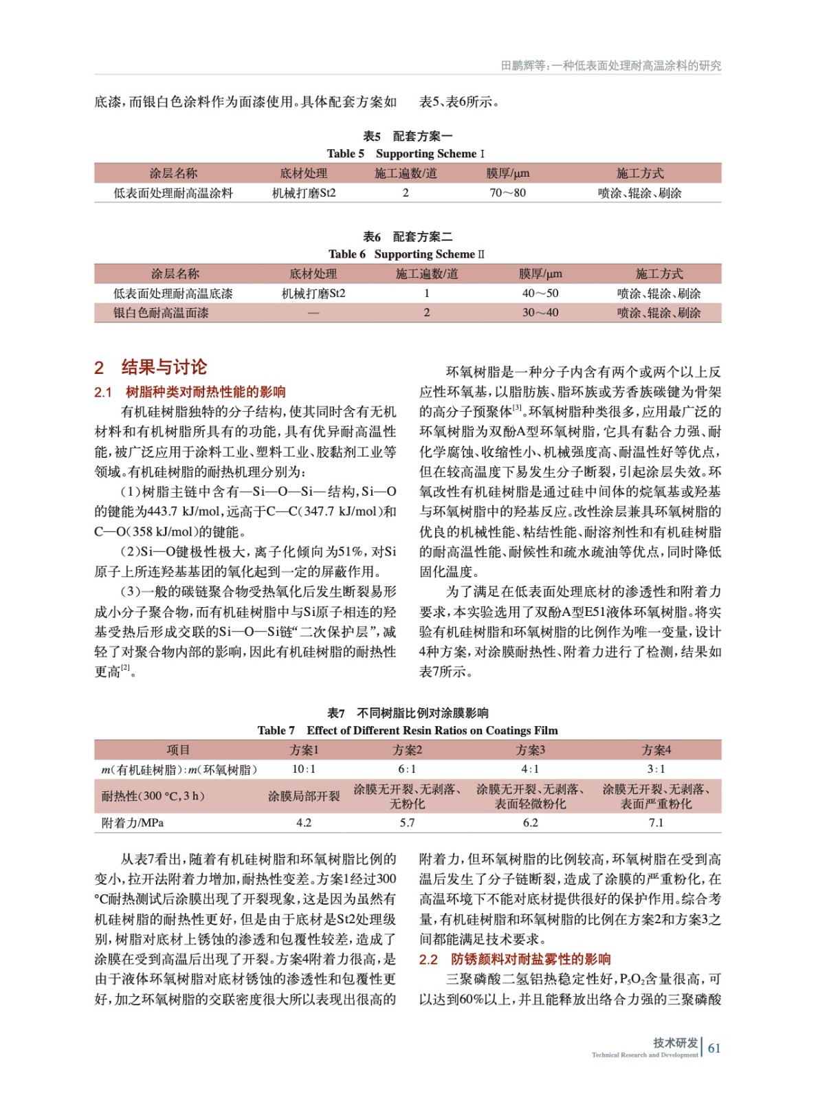 介紹了一種用于高溫設備翻新維護、底材處理只能達到St2級別的耐高溫涂料,在按照HG/T 4564—2013標準4.3.1要求制備的底材和自然環境生銹的底材上同時進行了性能檢測。實驗結果表明,該低表面處理耐高溫涂料可以滿足高溫設備的防腐要求,并解決了底材不能噴射處理高溫設備的翻新維護問題。