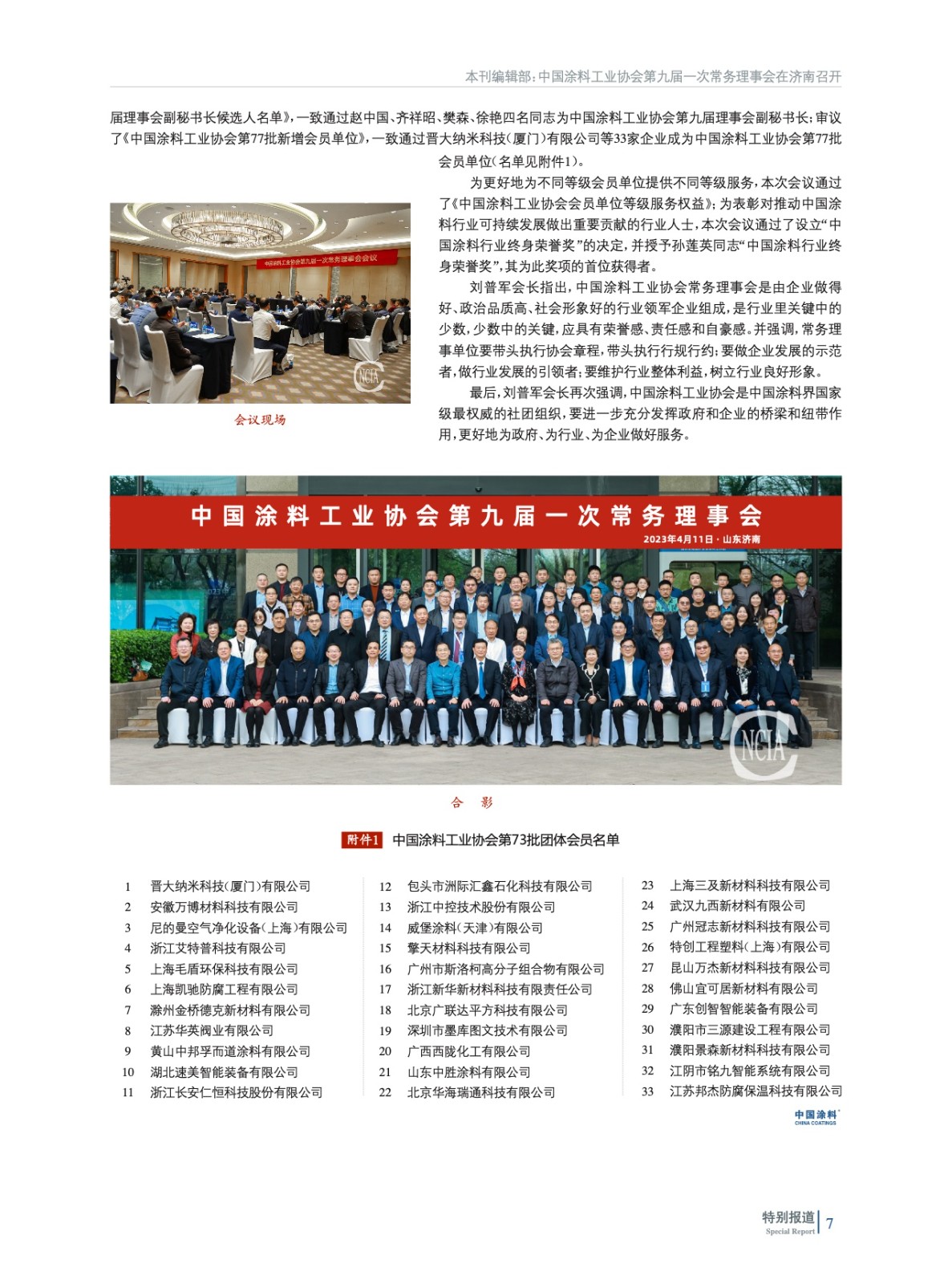 中國(guó)涂料工業(yè)協(xié)會(huì)第九屆一次常務(wù)理事會(huì)在濟(jì)南召開