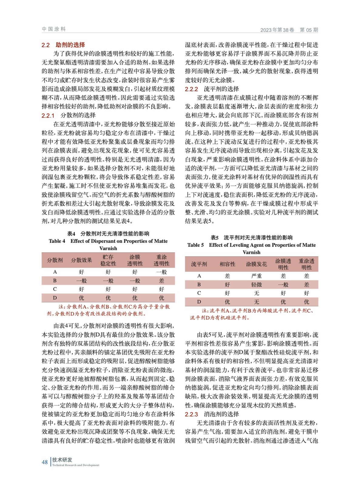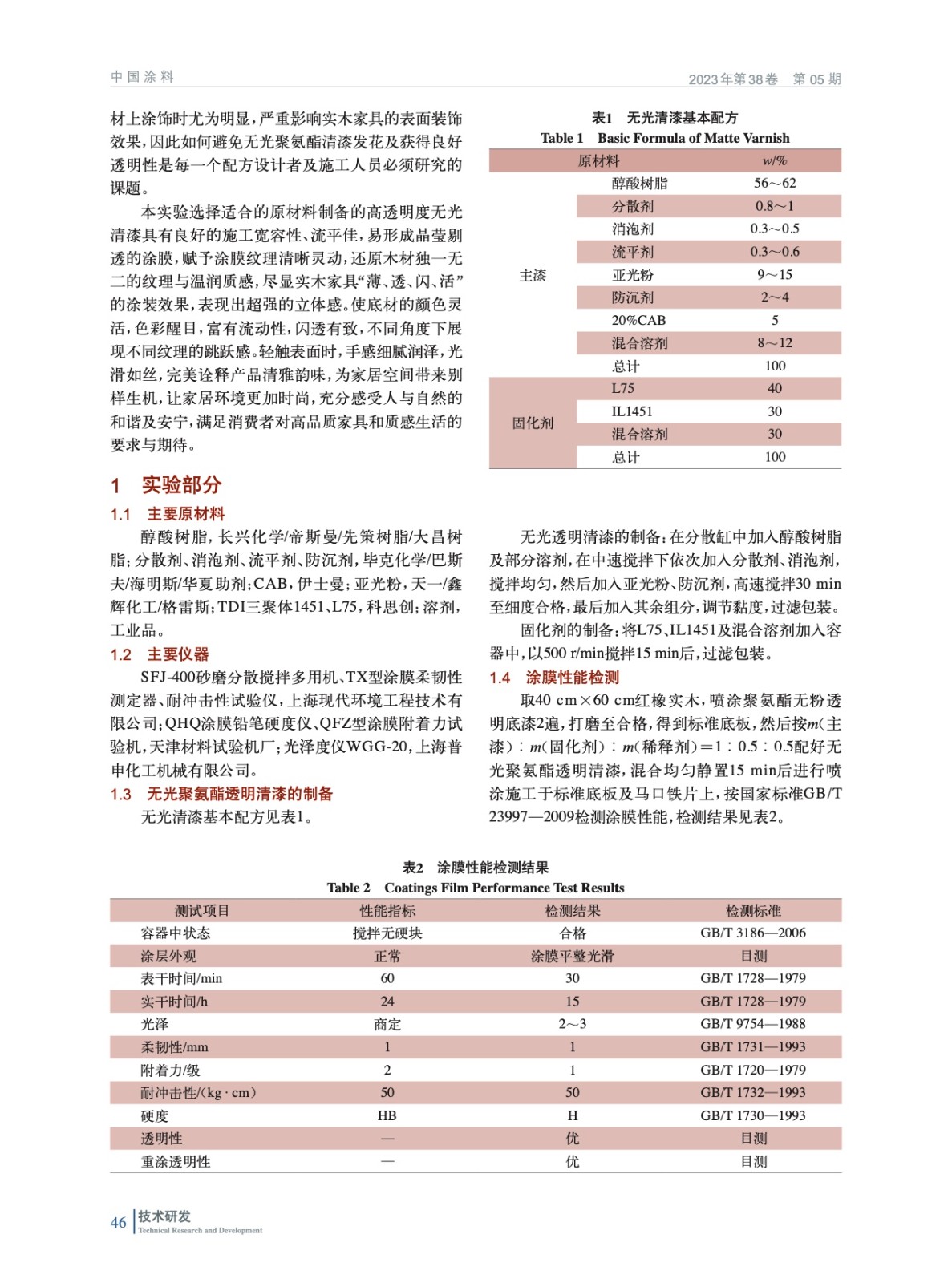 通過實驗選擇合適的原材料制備高透明度的無光聚氨酯透明清漆,能夠賦予實木家具“薄、透、閃、活”的涂裝效果,分析討論了影響無光涂膜透明性的因素,并提出相應的解決方法。