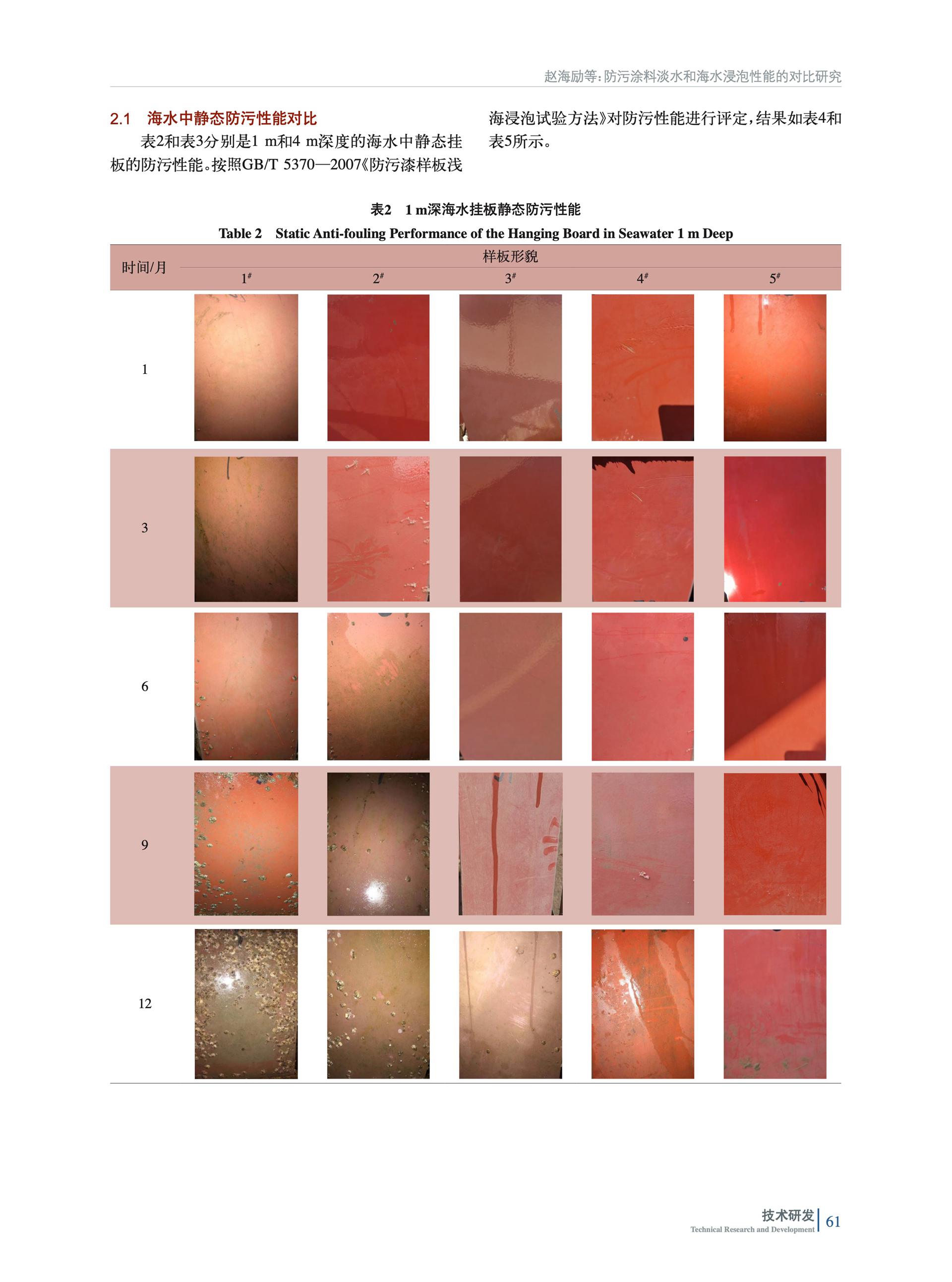 防污涂料淡水和海水浸泡性能的對(duì)比研究