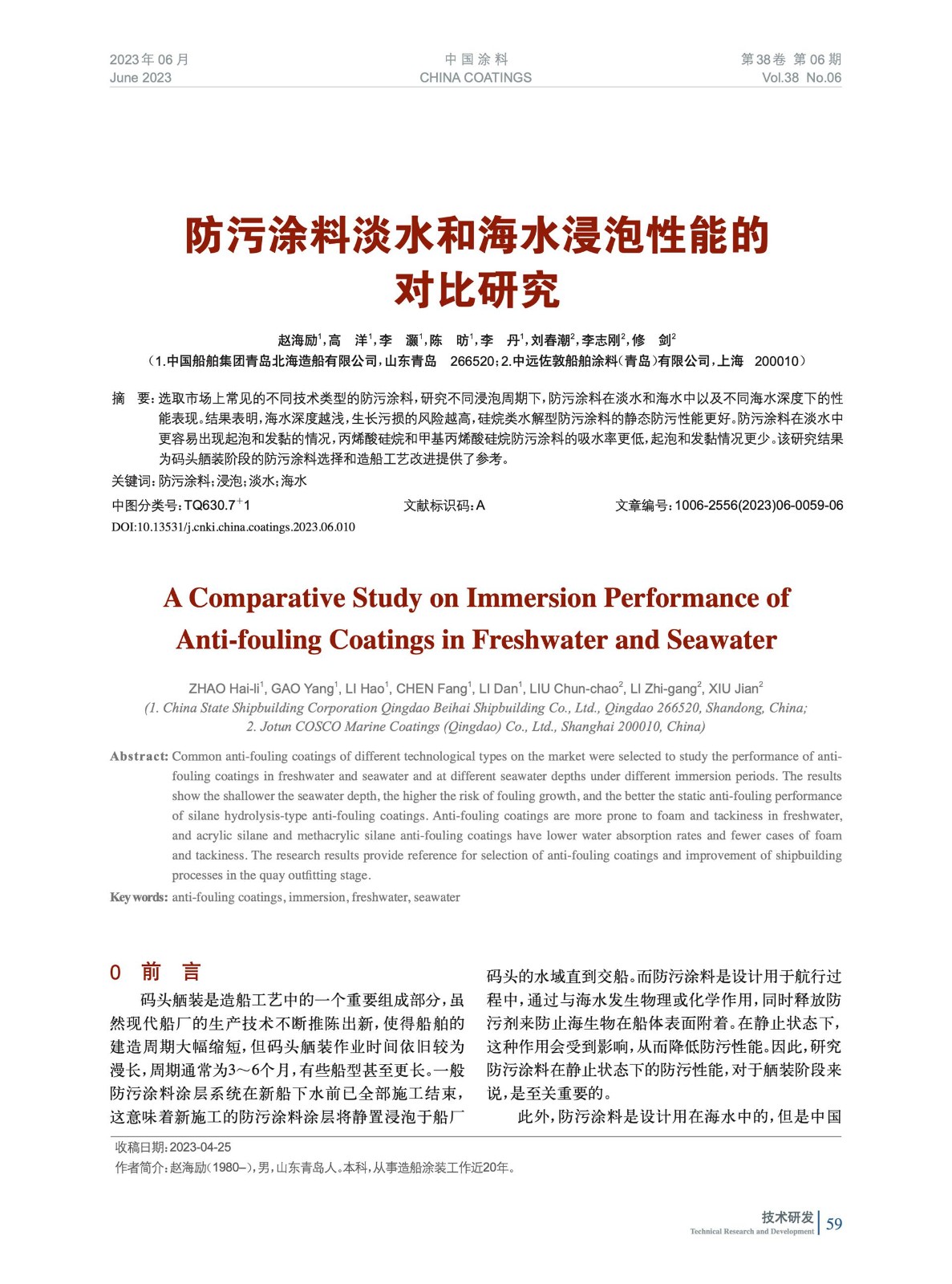 本文系作者@趙海勵(lì),高 洋,李 灝,陳 昉,李 丹,劉春潮,李志剛,修 劍 授權(quán)中國(guó)涂料網(wǎng)發(fā)表,并經(jīng)中國(guó)涂料網(wǎng)編輯,未經(jīng)允許不得轉(zhuǎn)載,如需轉(zhuǎn)載請(qǐng)聯(lián)系chinacoatingnet@vip.163.com