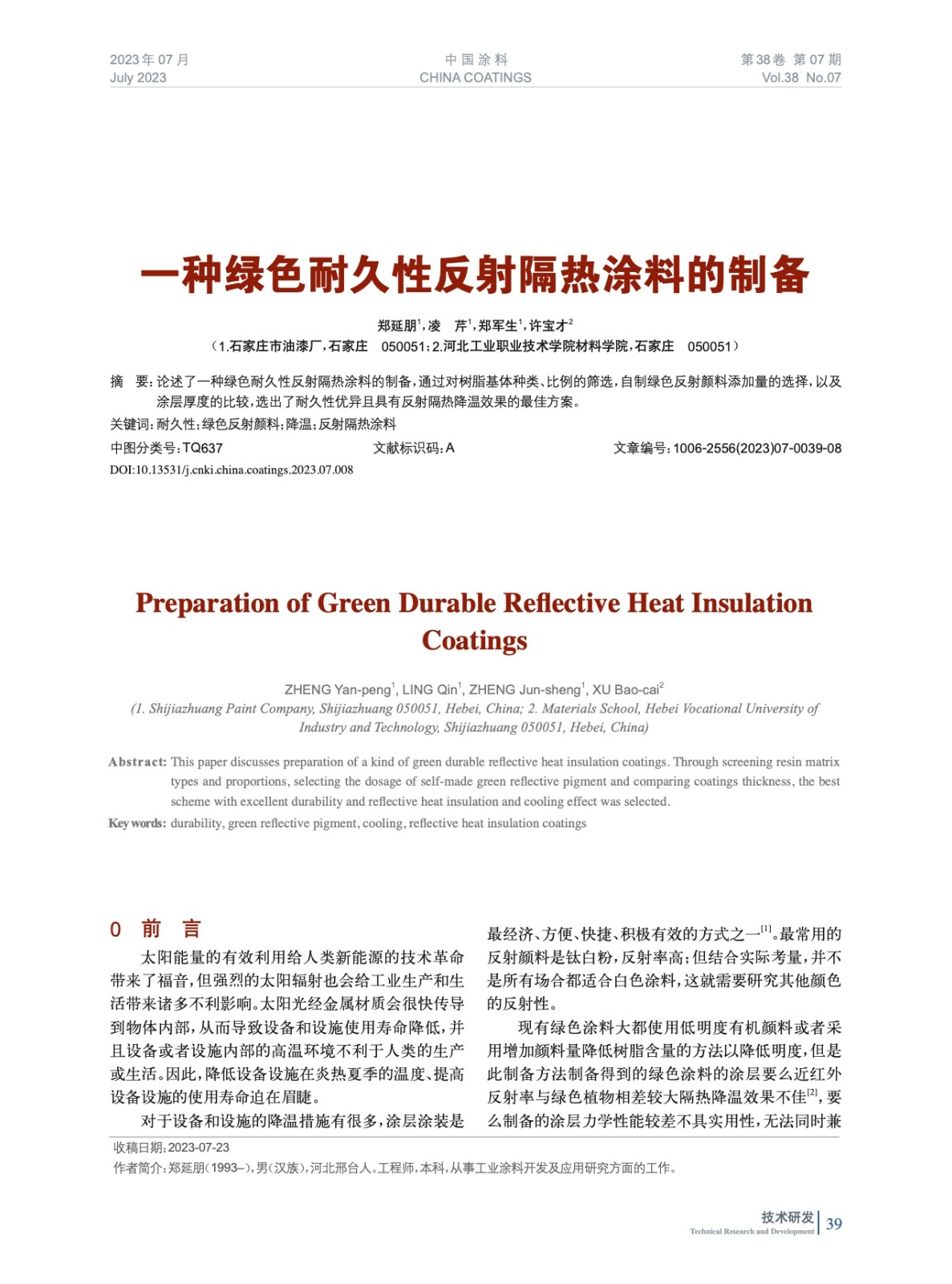 本文系作者@鄭延朋,凌 芹,鄭軍生,許寶才 授權(quán)中國涂料網(wǎng)發(fā)表,并經(jīng)中國涂料網(wǎng)編輯,未經(jīng)允許不得轉(zhuǎn)載,如需轉(zhuǎn)載請聯(lián)系chinacoatingnet@vip.163.com