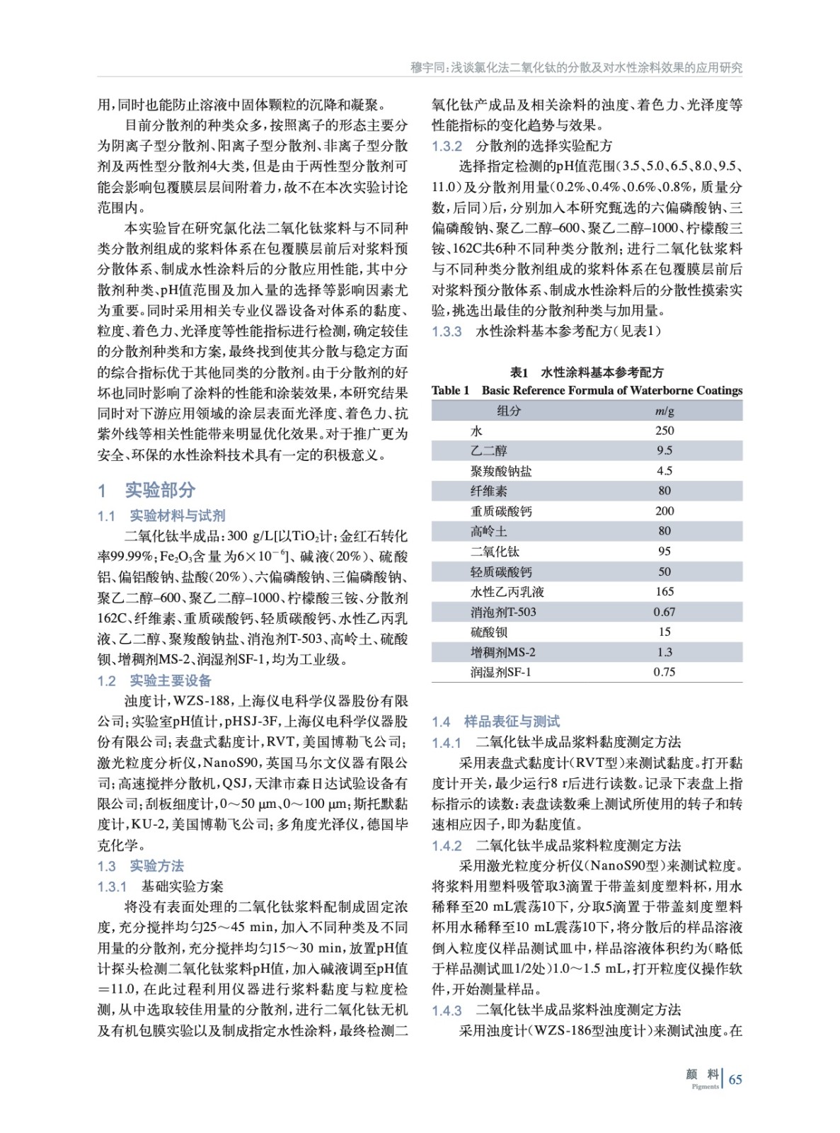 通過采用大量對體系黏度、粒度、分散細度、光澤度等檢測手段,研究氯化法二氧化鈦漿料與不同種類分散劑組成的漿料體系在包覆膜層前后對漿料預分散體系、制成水性涂料后的分散變化趨勢與效果,確定較佳的分散劑種類和方案,以便提高二氧化鈦產成品在水性涂料中的分散應用性能。