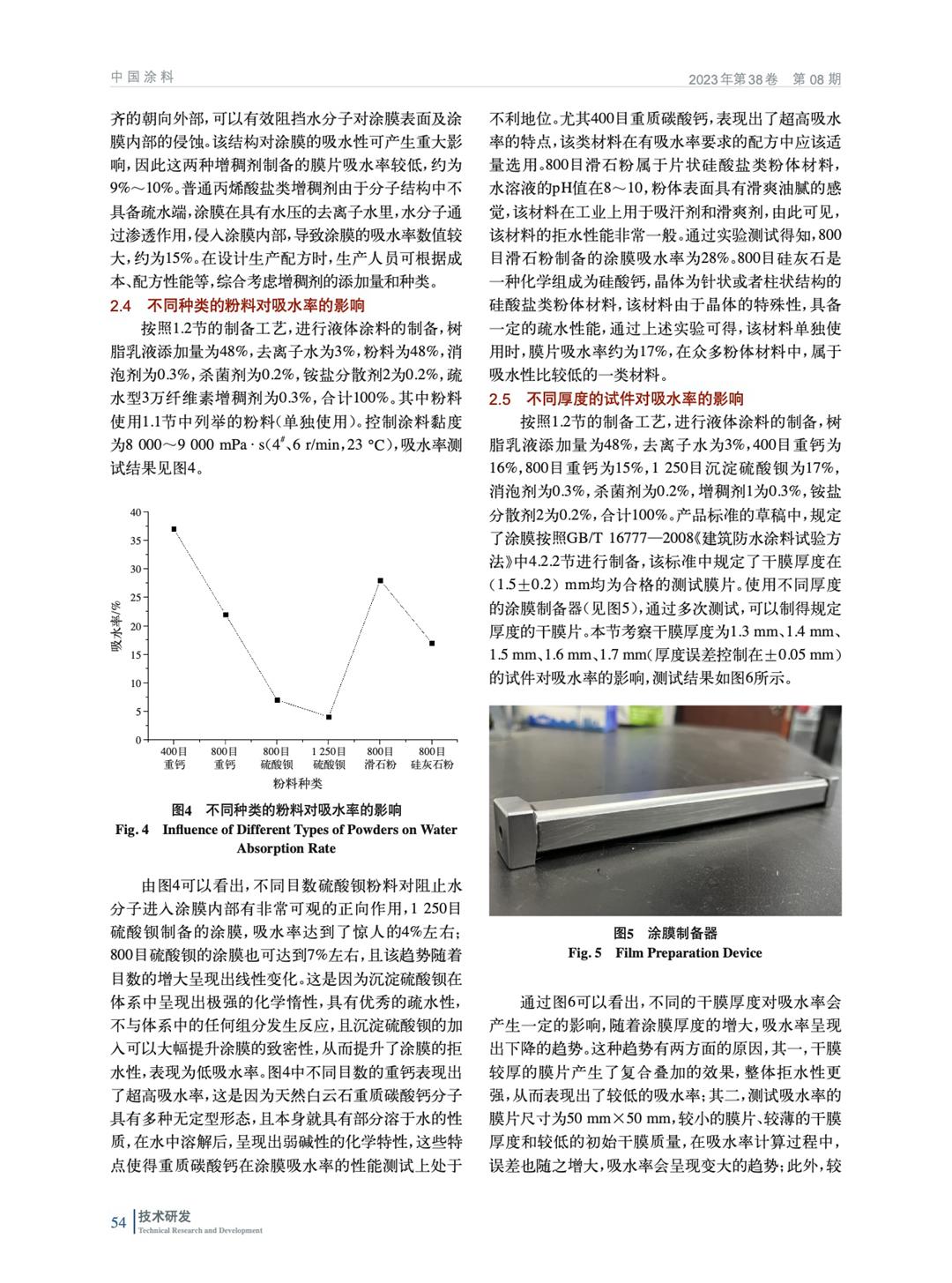 單組分聚合物乳液防水涂料吸水率的影響因素研究